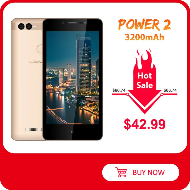 Смартфон LEAGOO POWER 2, 2 ГБ+16 ГБ, двойная камера, 3200 мАч, Android 8.1, MT6580A четыре ядра, 5-дюймовый экран HD, распознавание лица и отпечатков пальцев