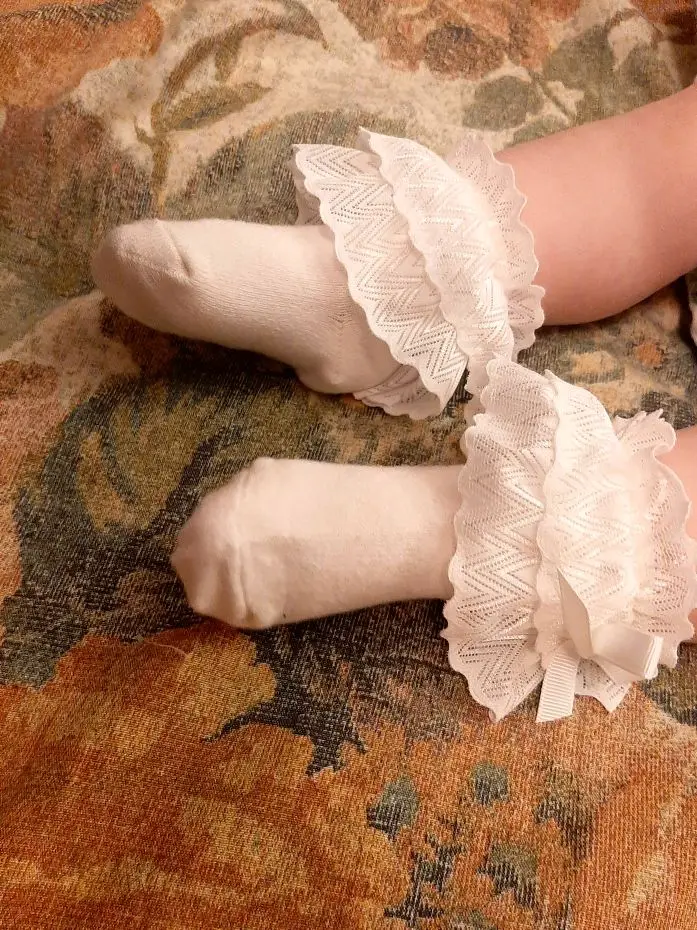 Классные, мягкие носки. Рюши конечно маленько отходят от шва