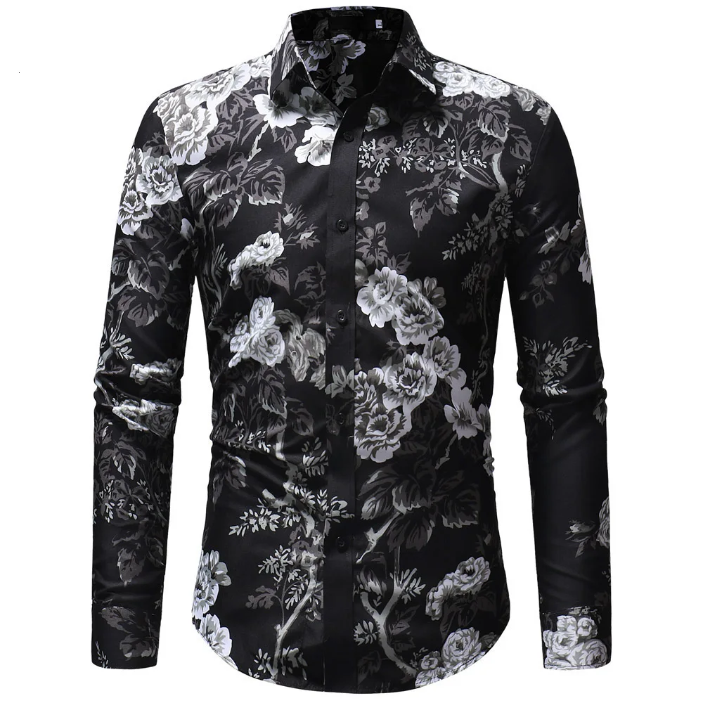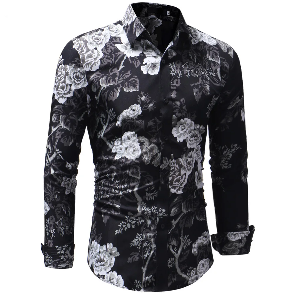 Рубашка мужская с цветочным принтом, Приталенная футболка с длинным рукавом для мужчин с длинным рукавом и 3D принтом, M-3XL, весна 2021