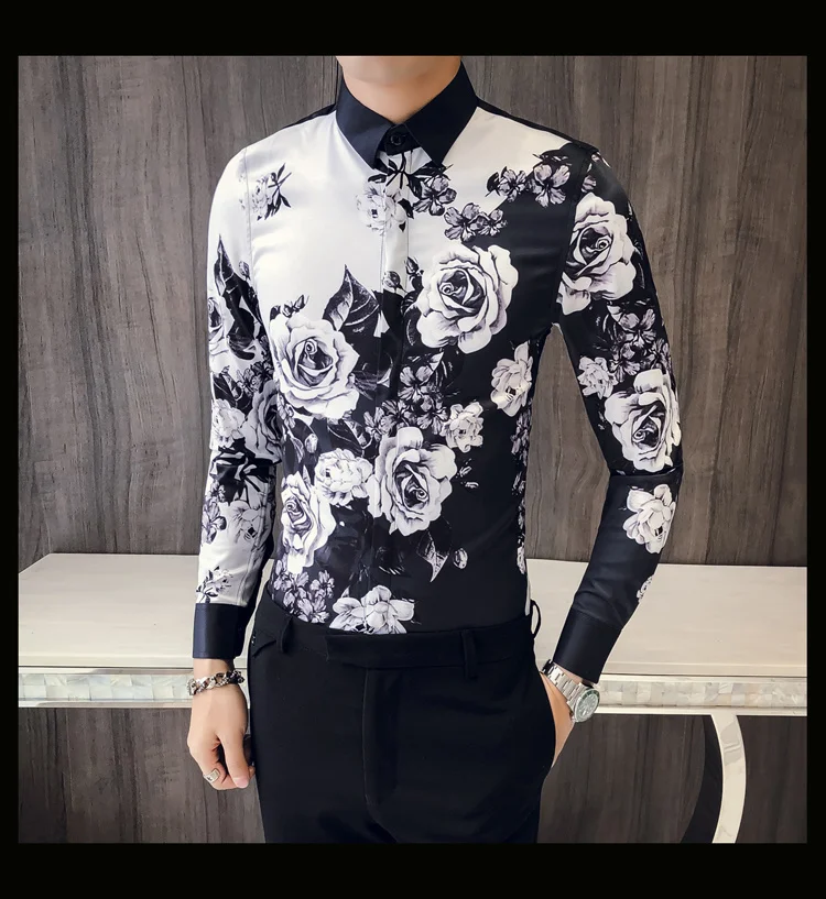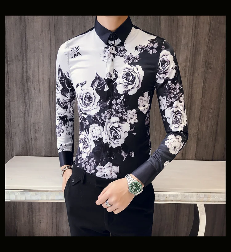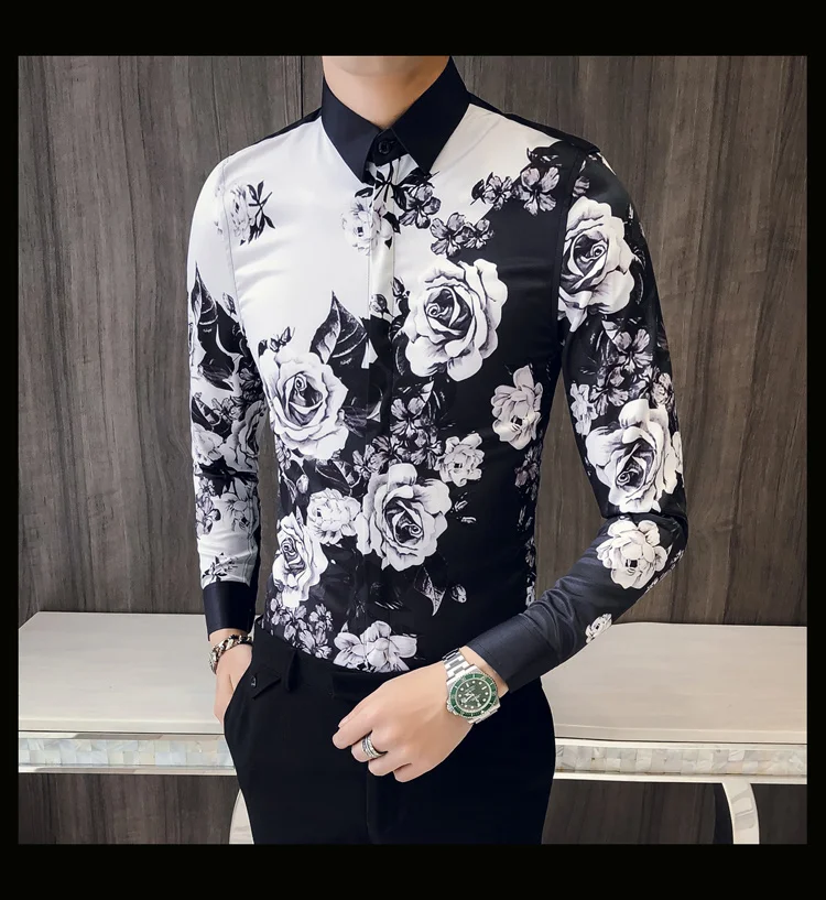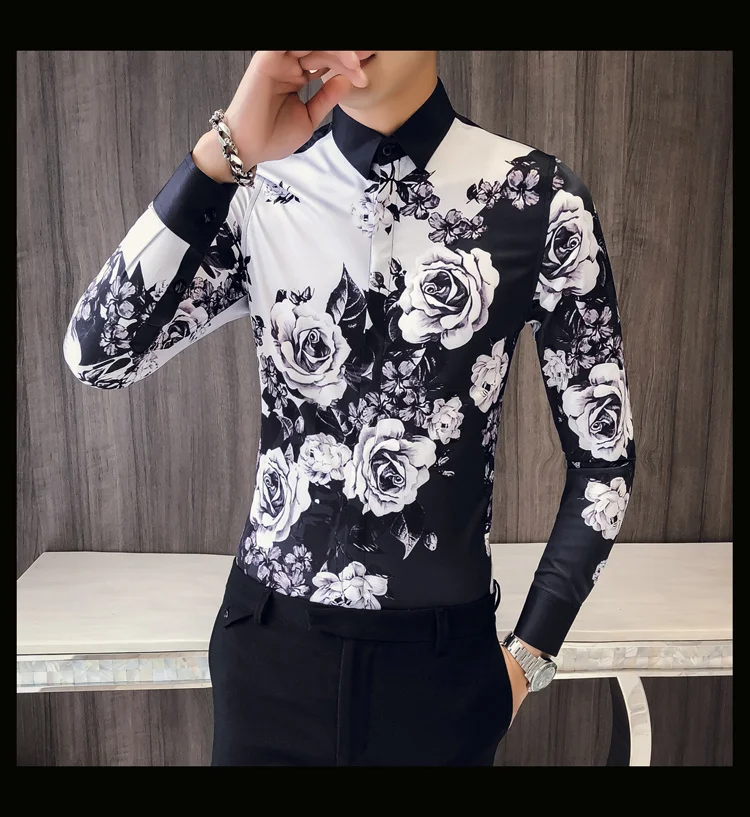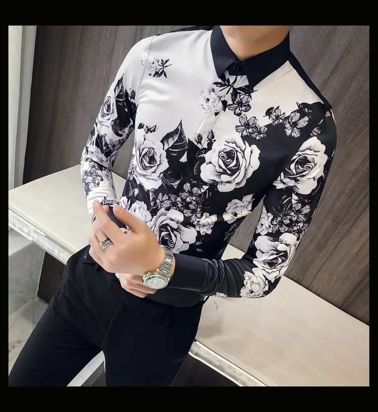 Розовая рубашка Мужская Дизайнерская рубашка с узором, Мужская Облегающая рубашка на пуговицах, с длинным рукавом, для свадьбы, клуба, вечеринки, 2018