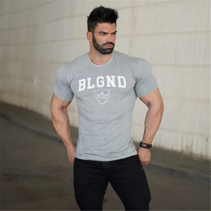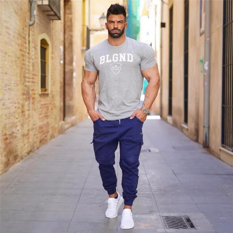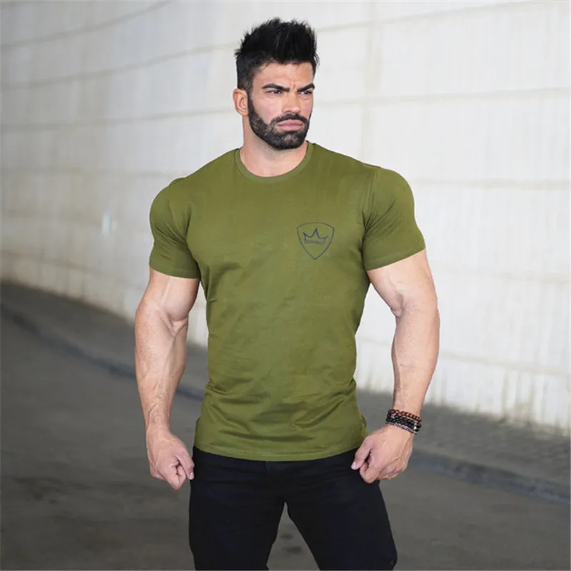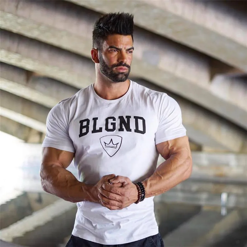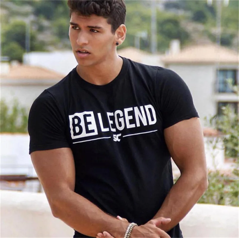 Футболка мужская Спортивная с принтом, хлопок, Мужской Топ для фитнеса, для бега, спортивного зала, бодибилдинга, лето 2021