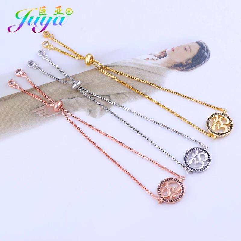 Juya модные индуизм поставки ювелирных изделий золоторозовое золото Регулируемый слайдер подбородка Браслеты для Для женщин Для мужчин подвеска-ОМ Браслет