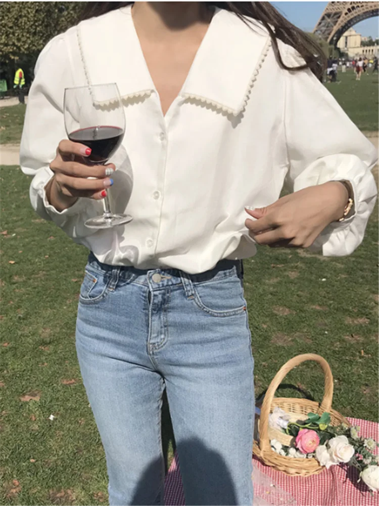 Кружевная белая рубашка с вышивкой, весенние женские повседневные белые топы, Женская хлопковая блузка с длинным рукавом для девочек, новые женские блузки