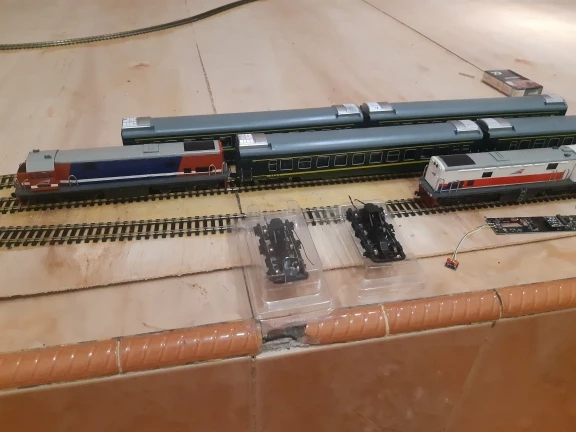 25 дней до Новосибирска. Все хорошо, полностью соответствует описанию и фото. Колесные пары HO-194 (12mm диаметр). Межосевое расстояние 24,5 + 23,5 mm, шкворень точно над средней осью. У осей большой боковой разбег (около 2 мм), как у крайних, так и у средней, модель может уходить вбок от оси пути.
