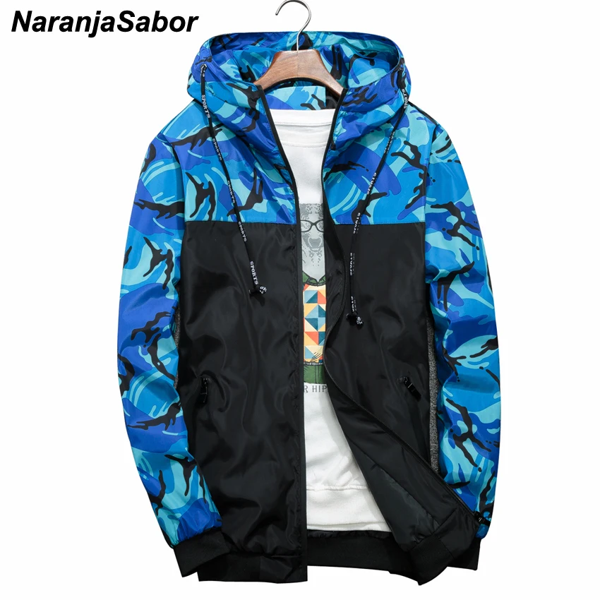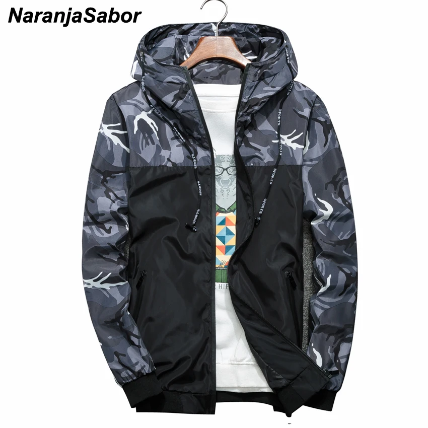 Куртка NaranjaSabor Мужская камуфляжная, Повседневная ветровка с капюшоном в стиле милитари, на молнии, брендовая одежда, N434, весна-осень