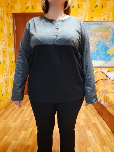 Очень хорошая ктонкая кофта на каждый день. Приятный трикотаж, не мнётся и не сеатывается. Размер соответствует описанию даже может слегка большемерит .
