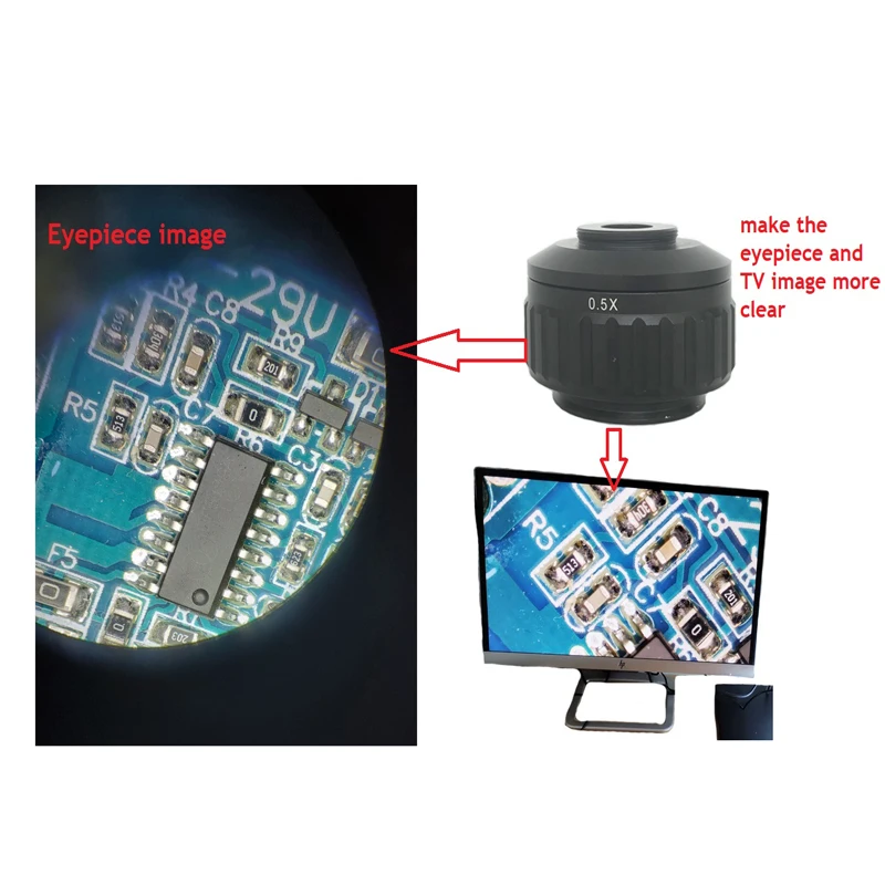 1 x пара супер Widefield 10X окуляров1x56-светодиодный кольцевой светильник с адаптером селфи-Стик1 x столешница большого размера1 x стойка для фокусировки1 пара защитных очковПылезащитный чехол-1 шт.1x 0.5X объектив (для 3.5X -90X)