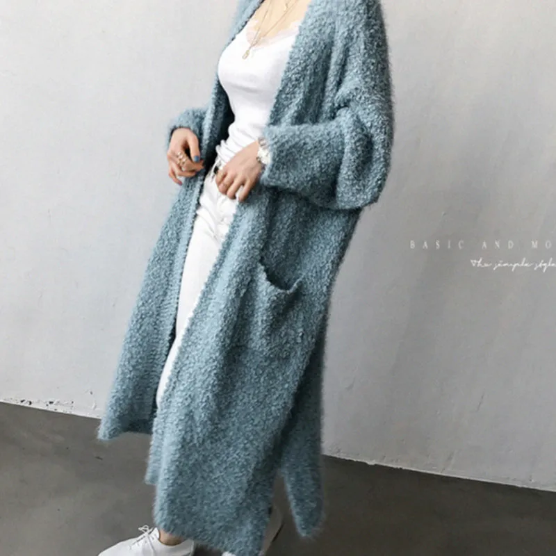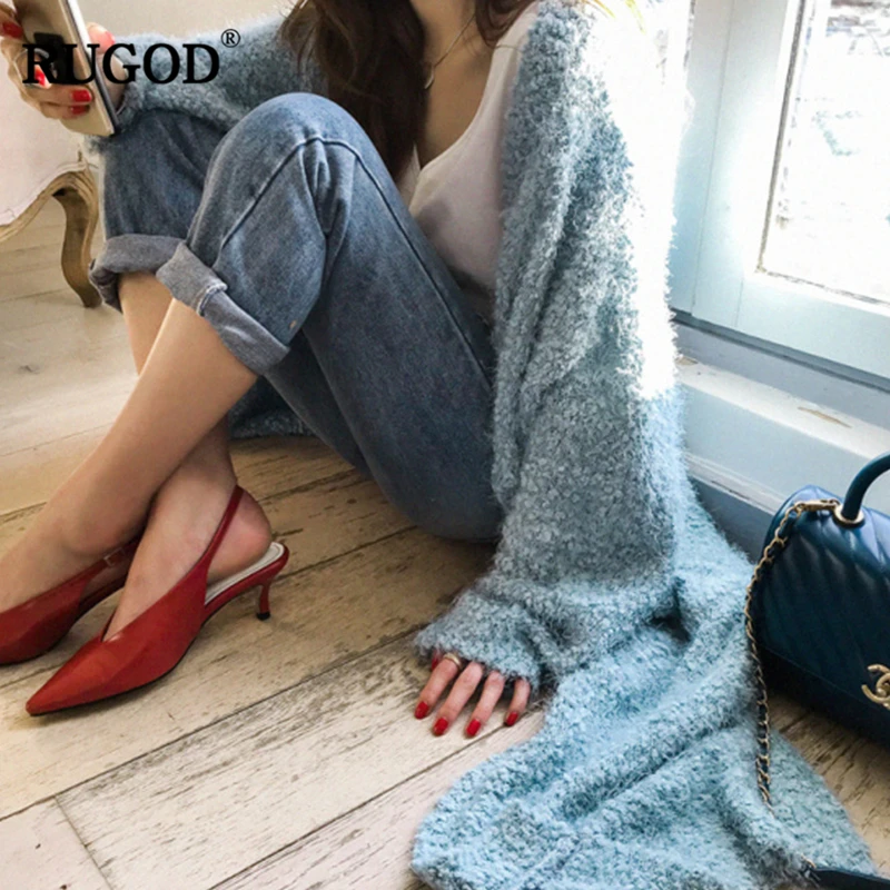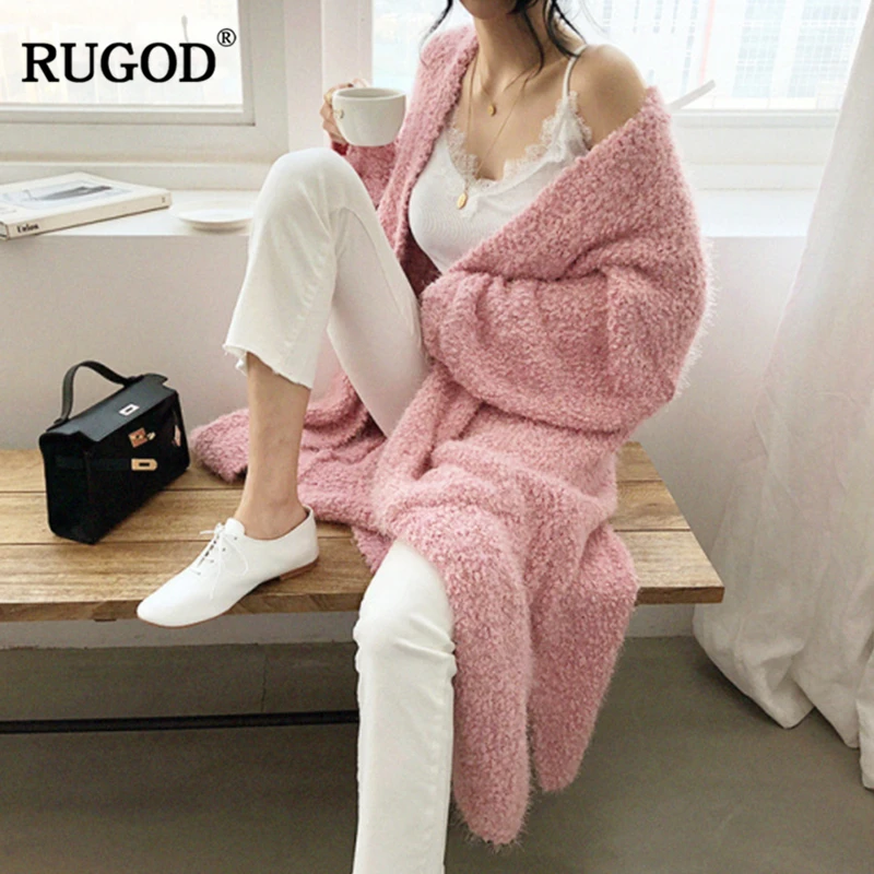 Новинка 2020, модные плюшевые вязаные кардиганы RUGOD с карманами, шикарный длинный кардиган, свитер, простой свитер, женские кардиганы 2020