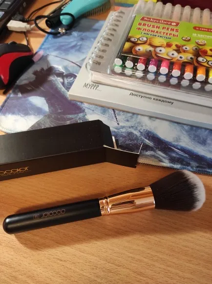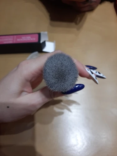Очень классная кисточка. Выглядит шикарно, в деле пока не пробовала. Упаковка немного помятая была, но это ничего. Приятная на ощупь. Достаточно быстро пришла во время карантина. Волоски ровно подстрижены.