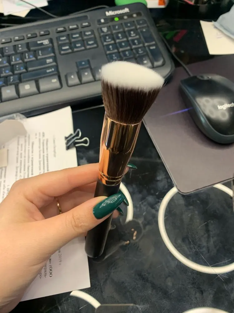 Очень приятная кисть как наносит тон ещё не пробовала. Дошла за 20дней