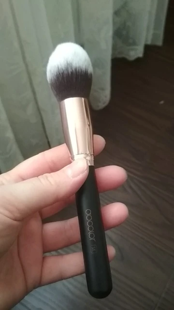 Слева - кисть 102 silk finish за 2000р, которой пользуюсь я, справа - вполне приличная кисть курильщика за 200, которой я буду красить клиентов, ибо такова жизнь. Для тех, кто ранее делал это пальцем, кисть docolor, у которой, кстати, стерлось название бренда с ручки через 2 дня и одну помывку - покажется даром небес. Для тех, у кого были профессиональные кисти из дуофибры и таклона - она покажется недостаточно плотной, что во-первых, требует растягивать продукт дольше, во-вторых, увеличивает расход продукта вдвое. Тональное средство типа флюид или легкой текстуры впитывается в нее очень быстро и требуется его реально много. Более плотные тона остаются на кончике ворса и расходуются медленнее. Не линяет, металлическая часть приклеена к ручке на первый взгляд хорошо. Ставлю 5 звезд, потому что за эту цену функционал очень приличный. Приехала в коробке, которую помяла почта. В общем, прекрасный выбор для малобюджетных визажистов и «для себя».