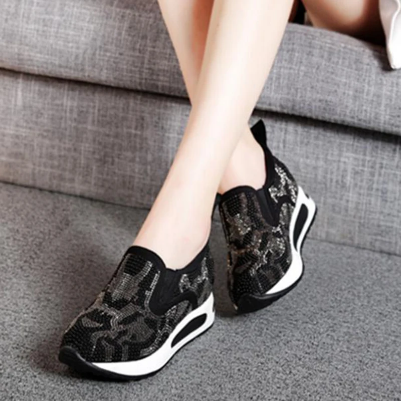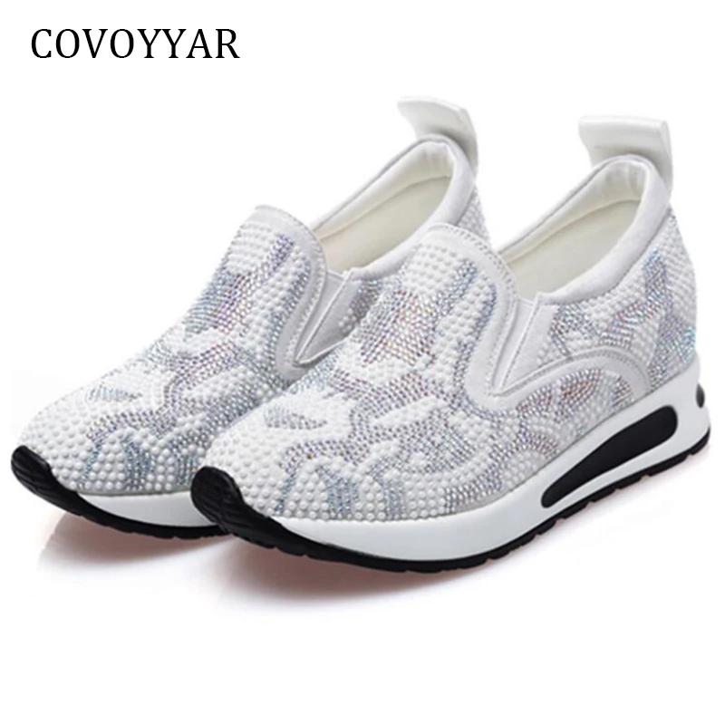 Женские высокие кроссовки со стразами COVOYYAR, Повседневная дышащая обувь на танкетке со скрытой танкеткой, модель WSN699, 2022