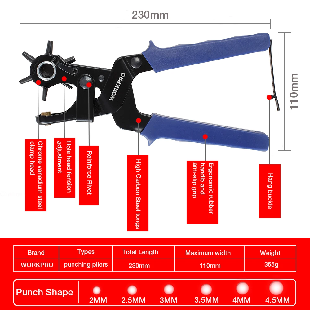 Плоскогубцы для пробивки отверстий WORKPRO, инструменты для ремонта часов, перфоратор для ремешка часов, карты, бумаги