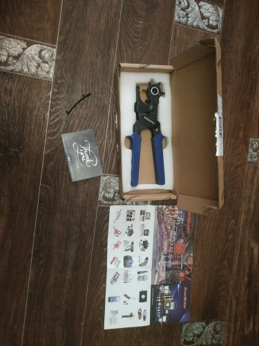 Товар доставлен до Москвы за 3 дня. Раньше имел проблемы сделать отверстие для пряжки в ремне. Приходилось применять подручные средства или идти в магазин и просить сделать отверстие. Теперь такой проблемы нет. Отверстие получилось качественное, прибор без усилий все пробил. Товар и продавца рекомендую