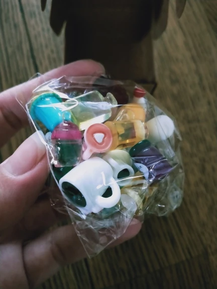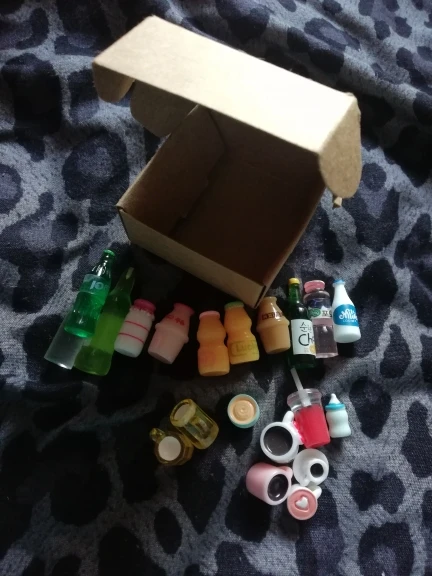 Классные бутылочки, баночки формата 1/12. Три предмета (справа на фото) соответствуют формату 1/6. Всё качественно сделано. Упакованы были в коробочку, очень надежно. Доставка в Германию заняла 6 недель. Спасибо, рекомендую.