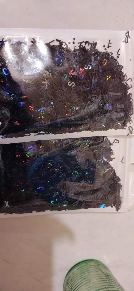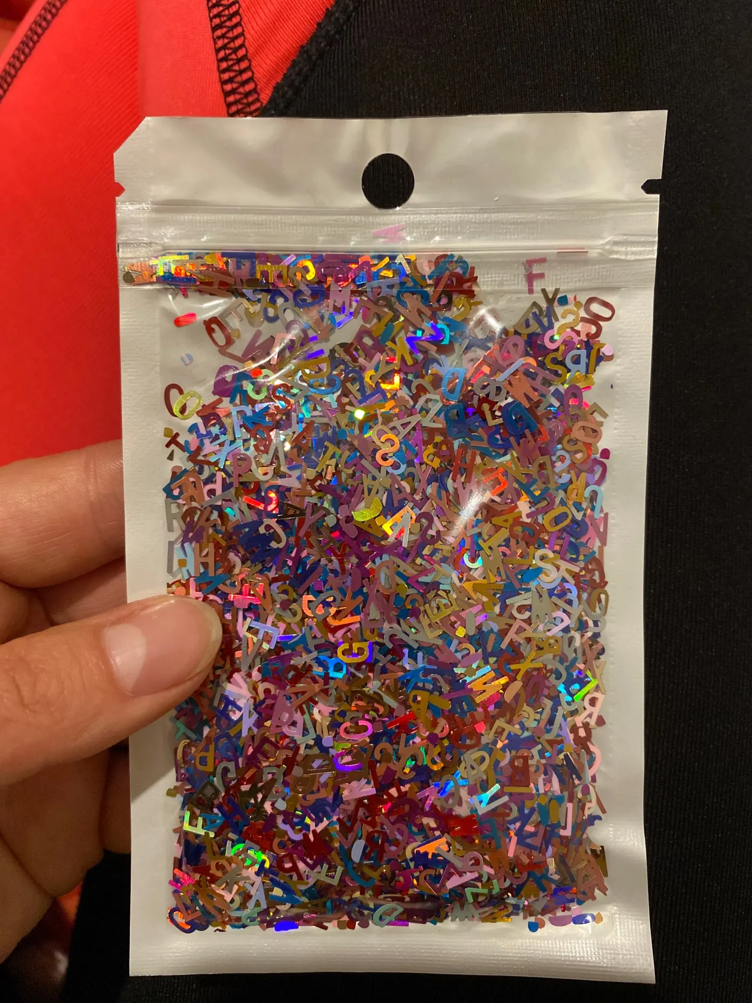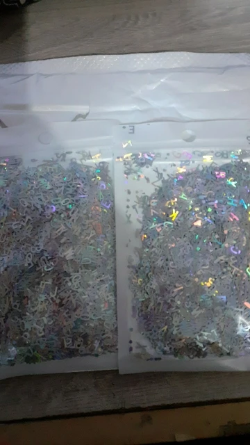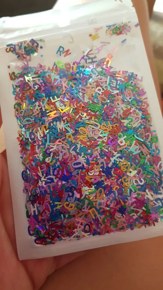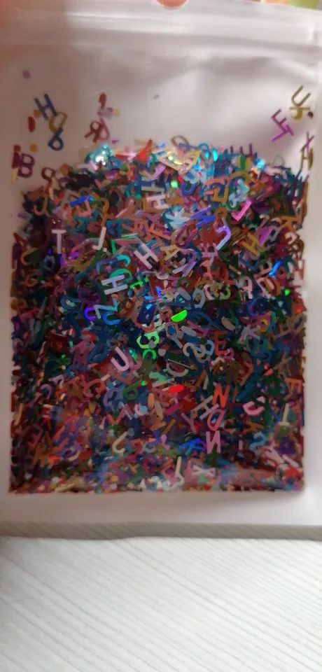 Absolutely beautiful and shinny. The seller packed the glitter in a little bag so there was minimal spillage. All letters are accounted for but there is not an even distribution of each letter, which is to be expected with mixed glitter. Over all 10/10 product with an accurate description.
