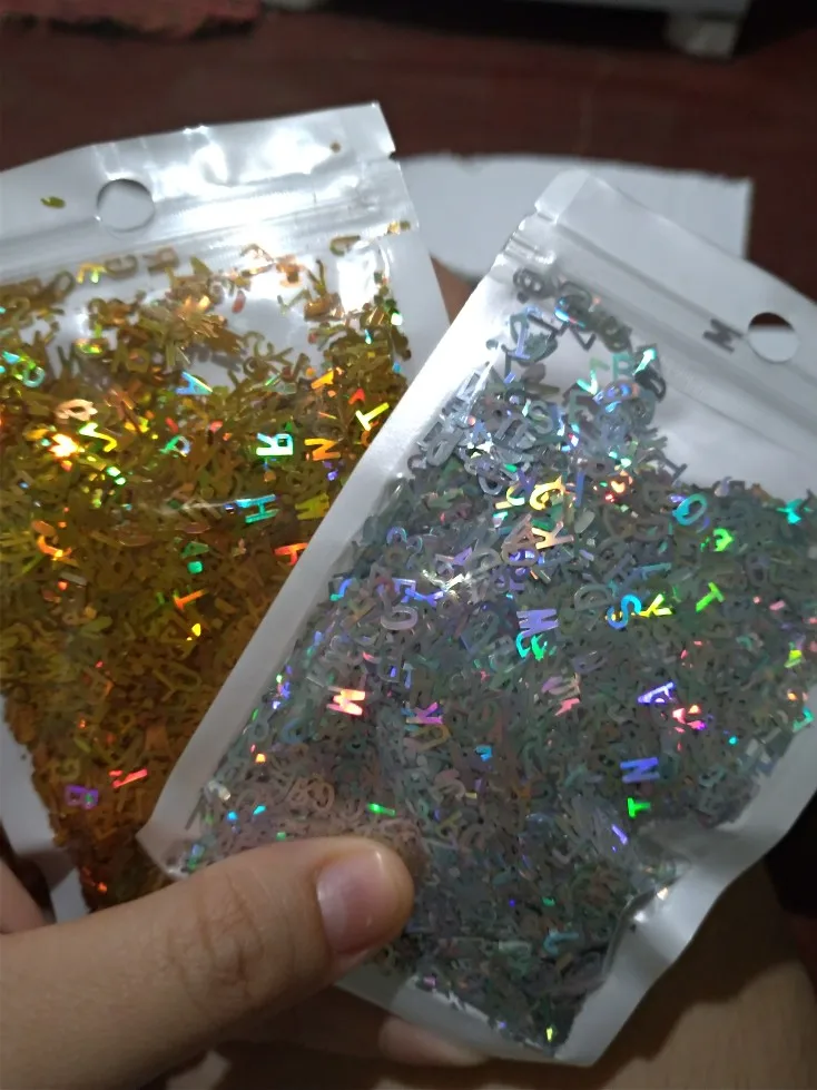 Ультратонкие Блестки для ногтей, 4 мм, разные формы букв, для самостоятельного изготовления ногтей, лазерные блестки, экологически чистые, блестка из ПЭТ, лак для ногтей, материал 10 г