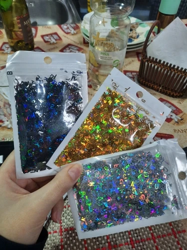 Очень симпатичные блёстки! Продавец положил в подарок ещё и снежинки. Спасибо большое!