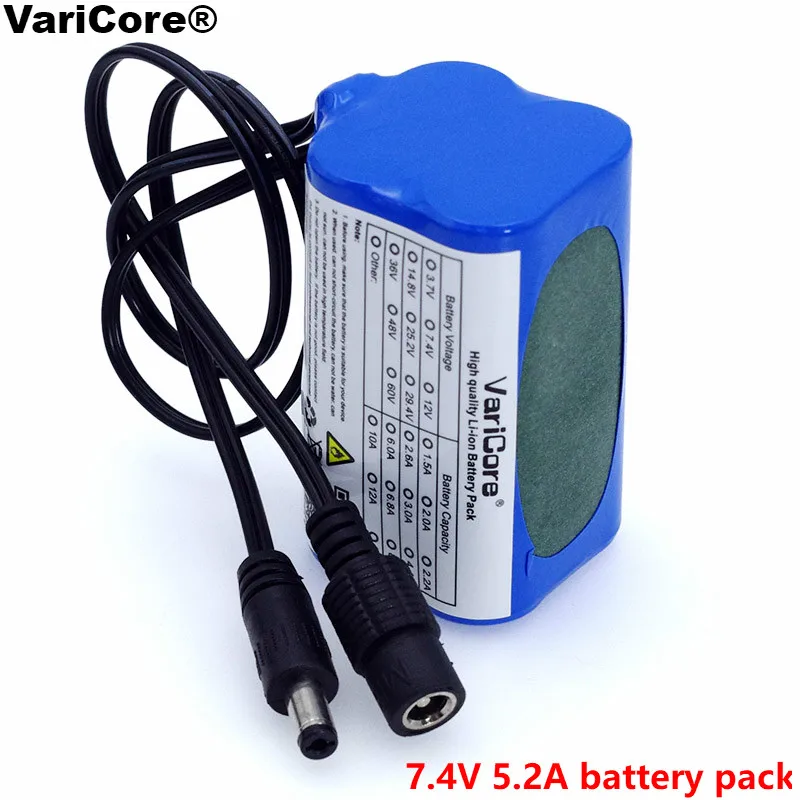VariCore Protect 7,4 В 5200 мАч 8,4 в 18650 литий-ионный аккумулятор для велосипедных фар специальный аккумулятор постоянного тока 5,5*2,1 мм