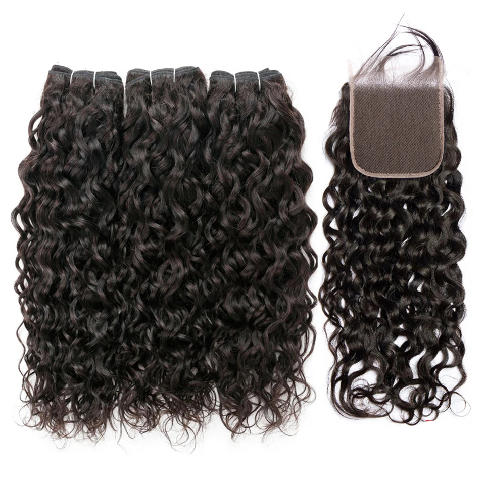 Hair Materialbrazilian wet and wavy human hair bundles with lace closure