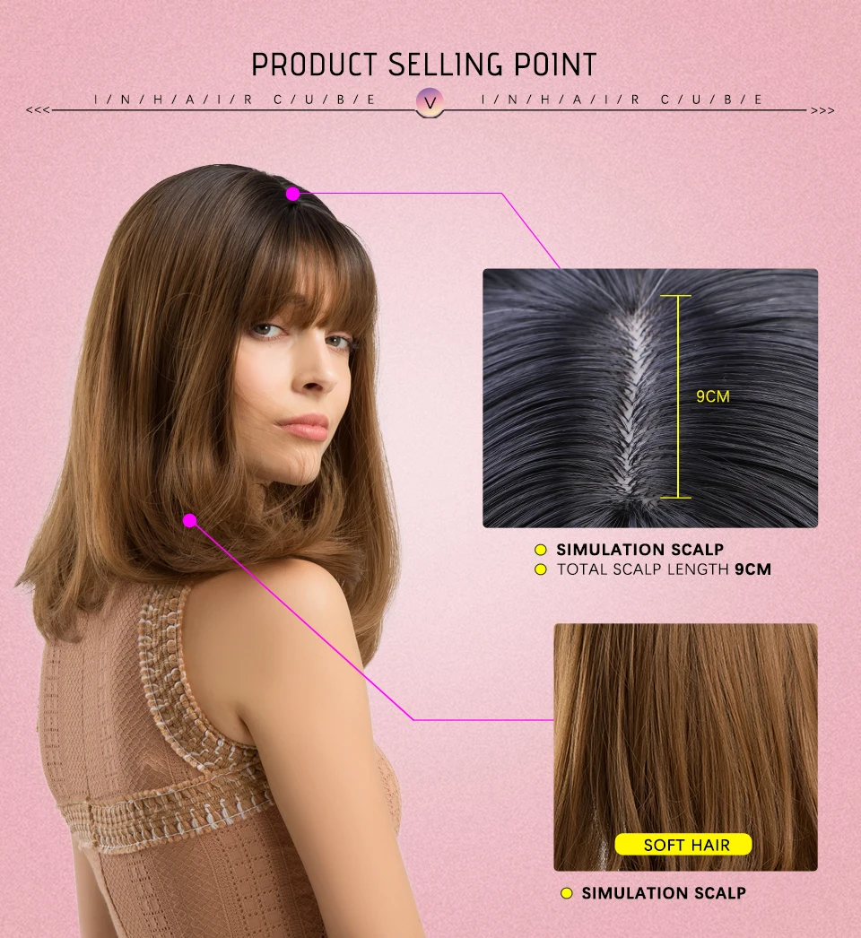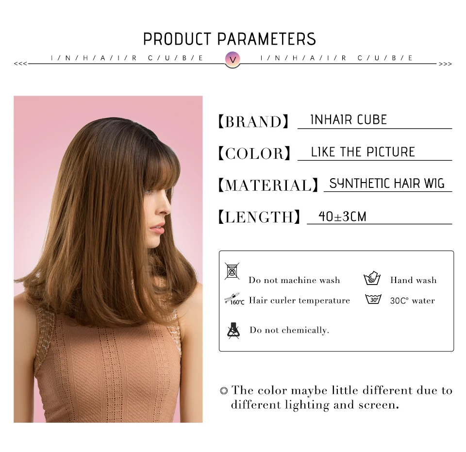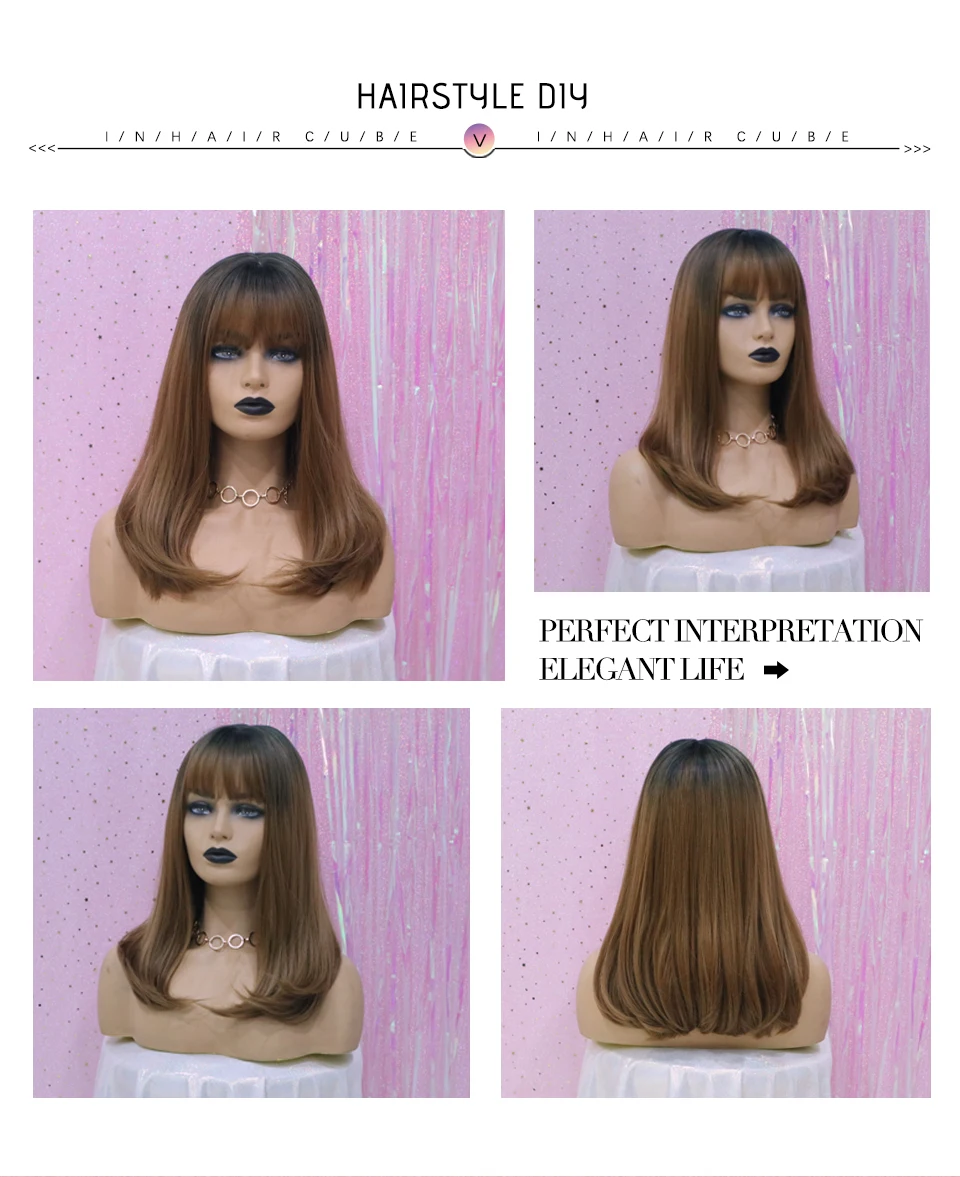 INHAIR CUBE 16 "Синтетические парики для женщин темные корни длинный парик с челкой Омбре волнистые волосы Реалистичное моделирование головы средняя часть