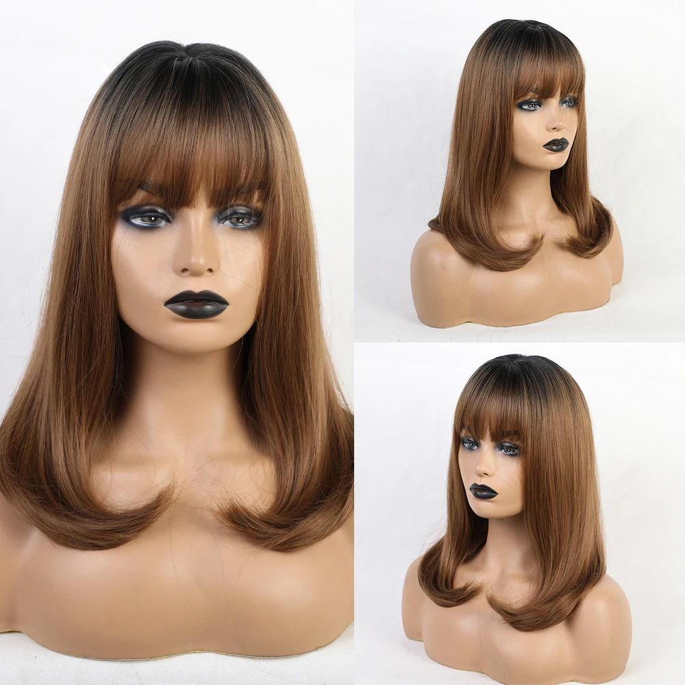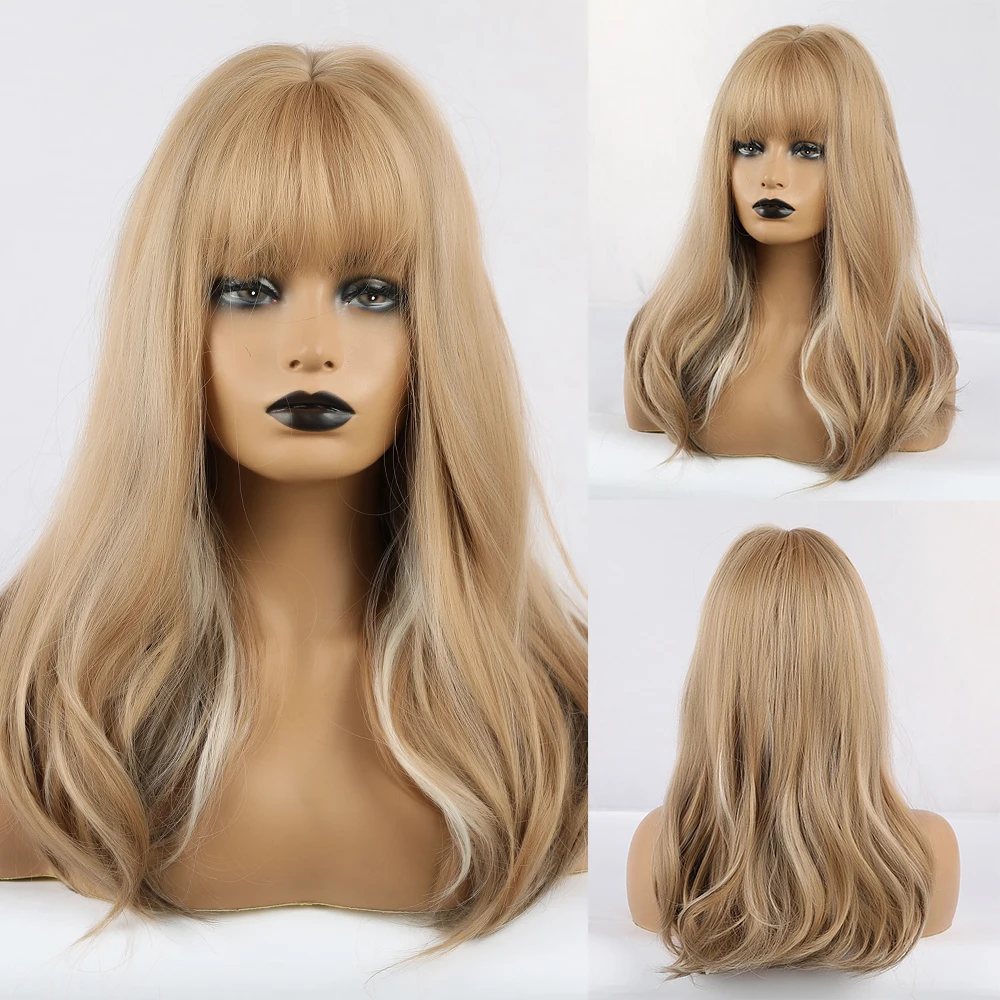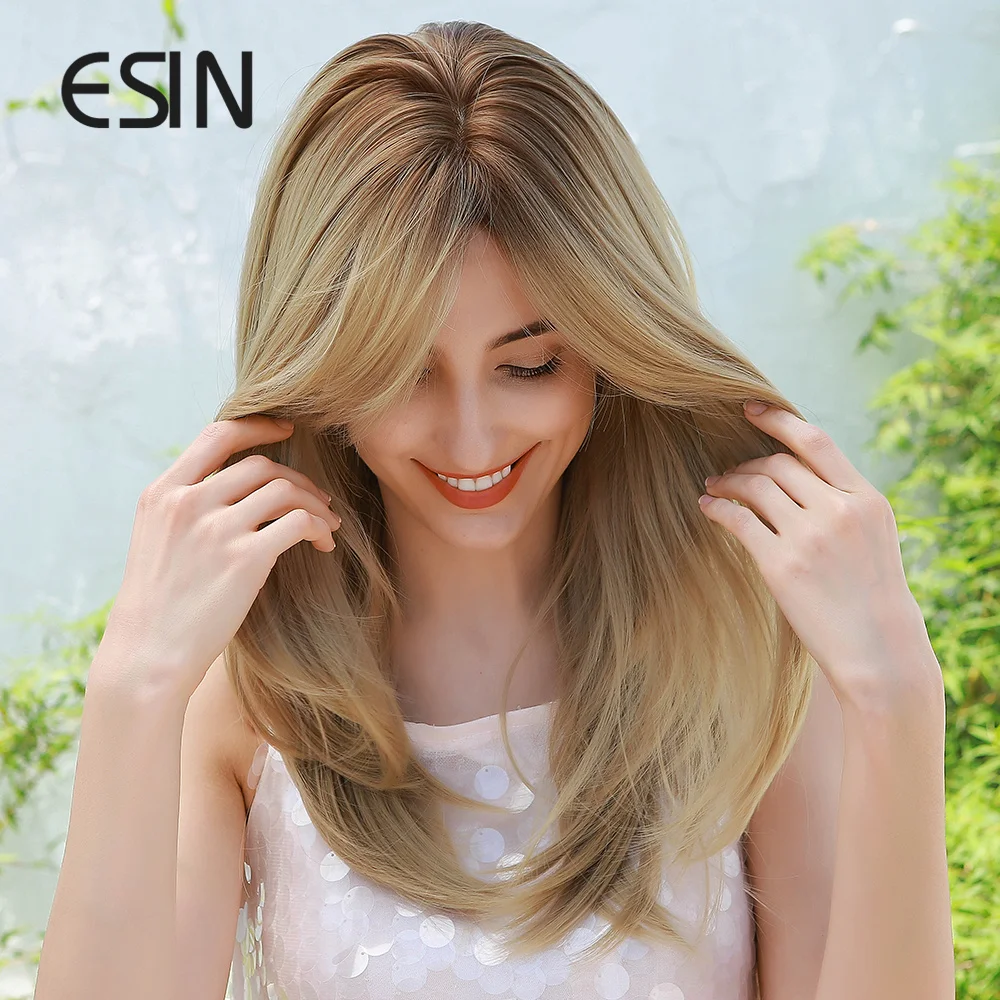 ESIN синтетические парики для женщин Омбре темные корни длинный волнистый парик с челкой волосы Реалистичная имитация кожи головы средняя часть