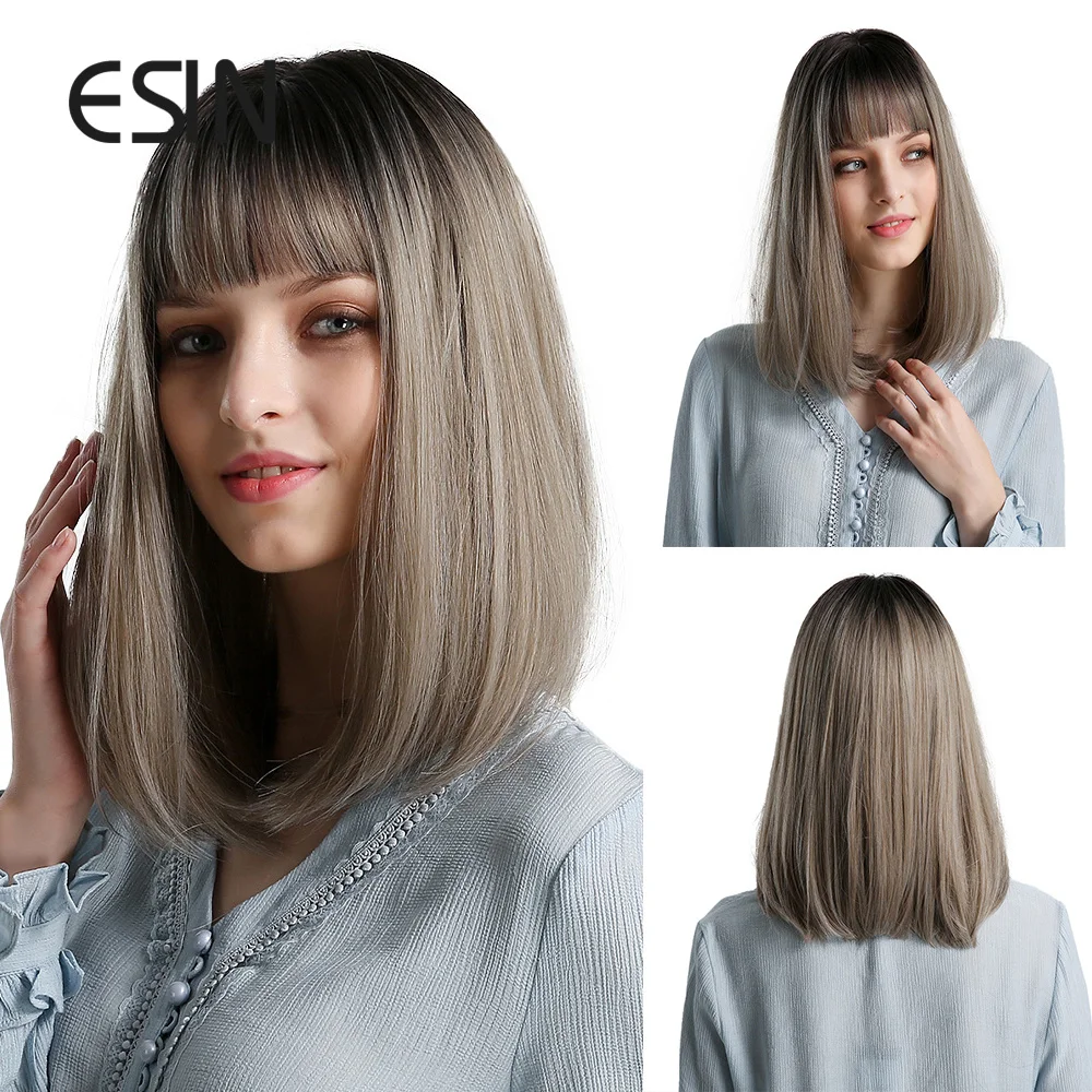 ESIN Женские парики с естественной челкой из искусственных волос Мн...