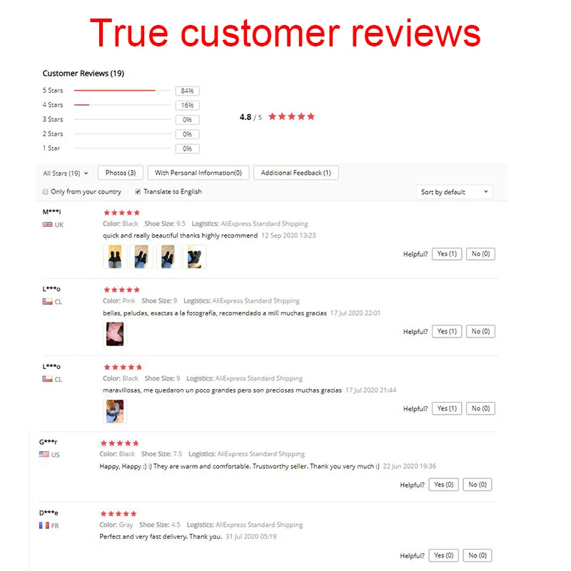 Я так доволен этой обувью! Они точно такие же, как в описании! Очень быстрая доставка. Они немного большие, но я предпочитаю, чтобы они были больше, чем слишком плотные. Обычно я размер 38-39, но я заказал размер 41, чтобы оставить место для меха внутри. Я могу порекомендовать брать на 1 размер больше, чем обычно. Спасибо продавцу!