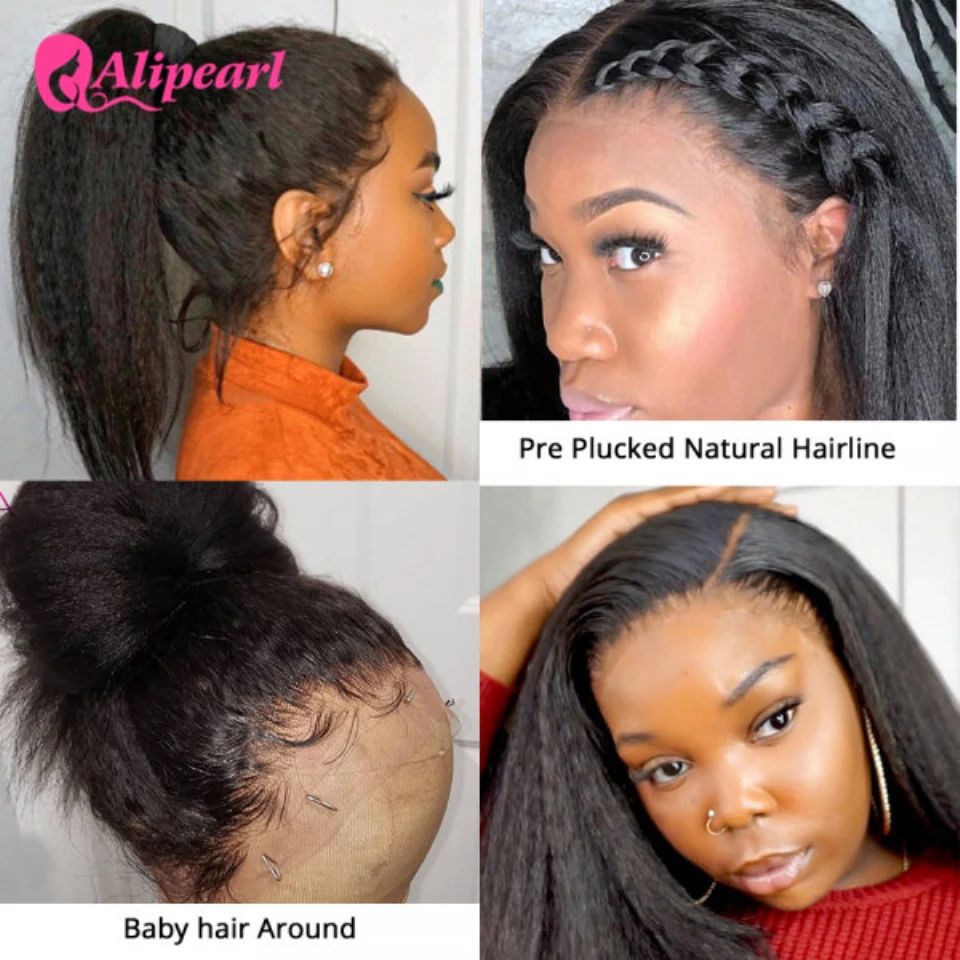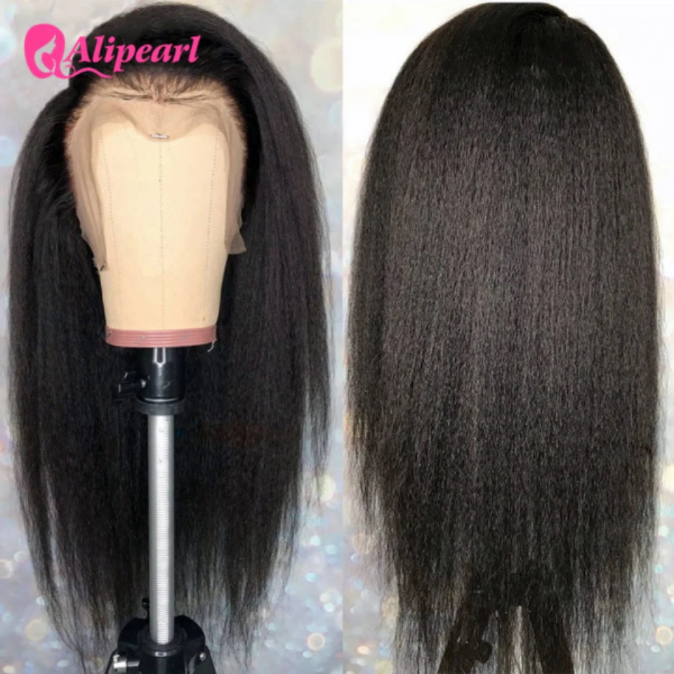AliPearl волосы курчавые прямые парики яки кружева фронта человеческие волосы парики 130% 150% 180% плотность предварительно выщипанные бразильские Реми кружевные парики