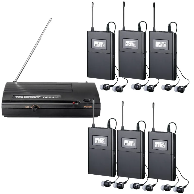 Беспроводная система мониторинга диапазона частот УВЧ Takstar WPM-200 для студии звукозаписи и на сцене 1 передатчик + 6 приемников