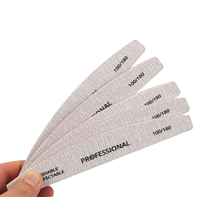 Пилка для ногтей, 50 шт., 100/180, профессиональная пилка для ногтей, полировка для педикюра и маникюра, инструменты для ухода за салонами, серая пилочка для ногтей