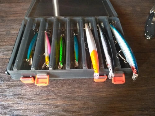 Коробка пришла за месяц. С продавцом не общался. Качество на приличном уровне, если воблеры не крупные, то можно положить 3 десятка. С каждой стороны есть восьмая узкая ячейка, можно положить мелочевку.