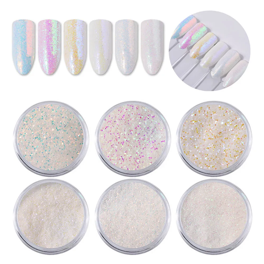 6 шт. Единорог Аврора белые блестки для дизайна ногтей блестящая пудра Русалка пыль маленькие чешуйки украшения для самостоятельного дизайна ногтей Блеск УФ Гель-лак