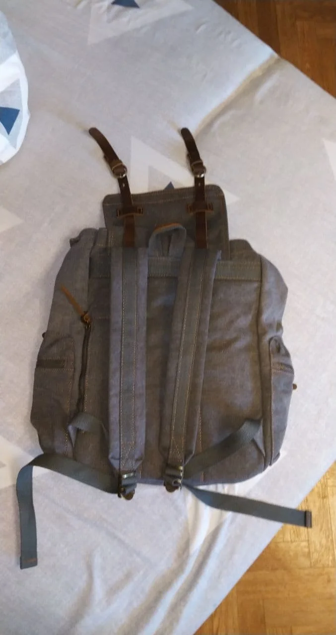 Хорошая емкость. Множество внутренних и внешних карманов. Приятная ткань.