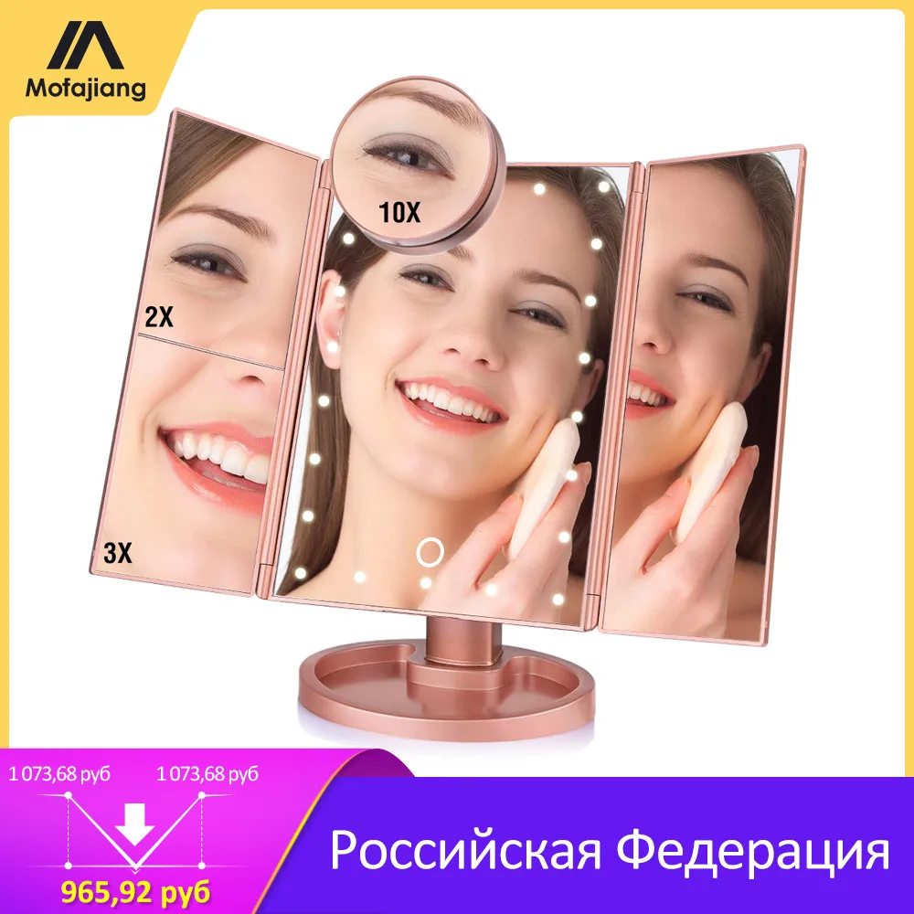 Зеркало настольное складное со светодиодной подсветкой и сенсорным экраном