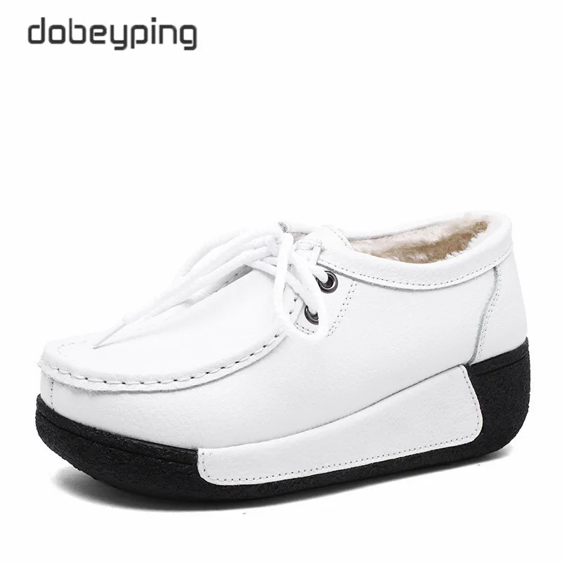 Женские кроссовки dobeyping из натуральной кожи, повседневная обувь на плоской платформе, плюшевые лоферы, без застежки, зимняя обувь