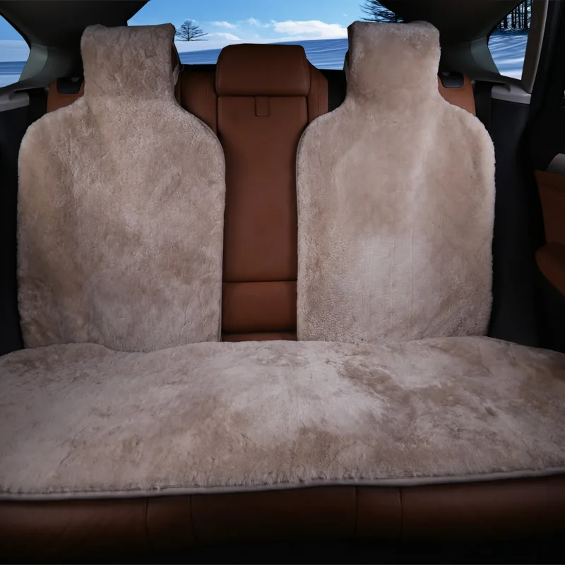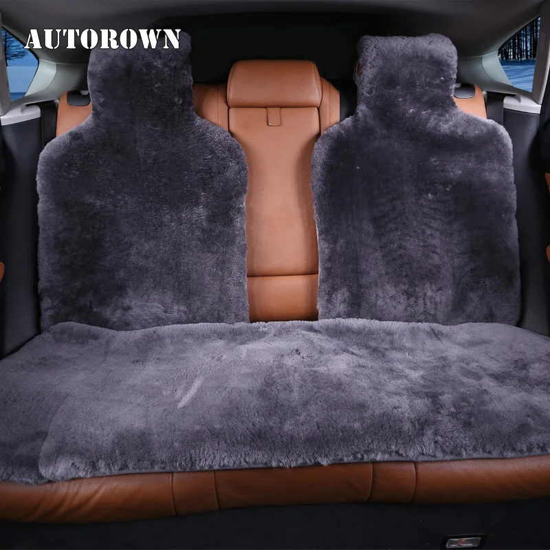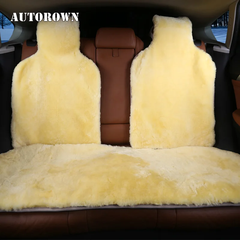 AUTOROWN Накидки из 100% австралийской овчины на задние сиденья автомобиля Универсальные размер Меховые накидки в машину Осень-зима Аксессуары в салон Мягкие и комфортные Накидки из натурального меха овчины