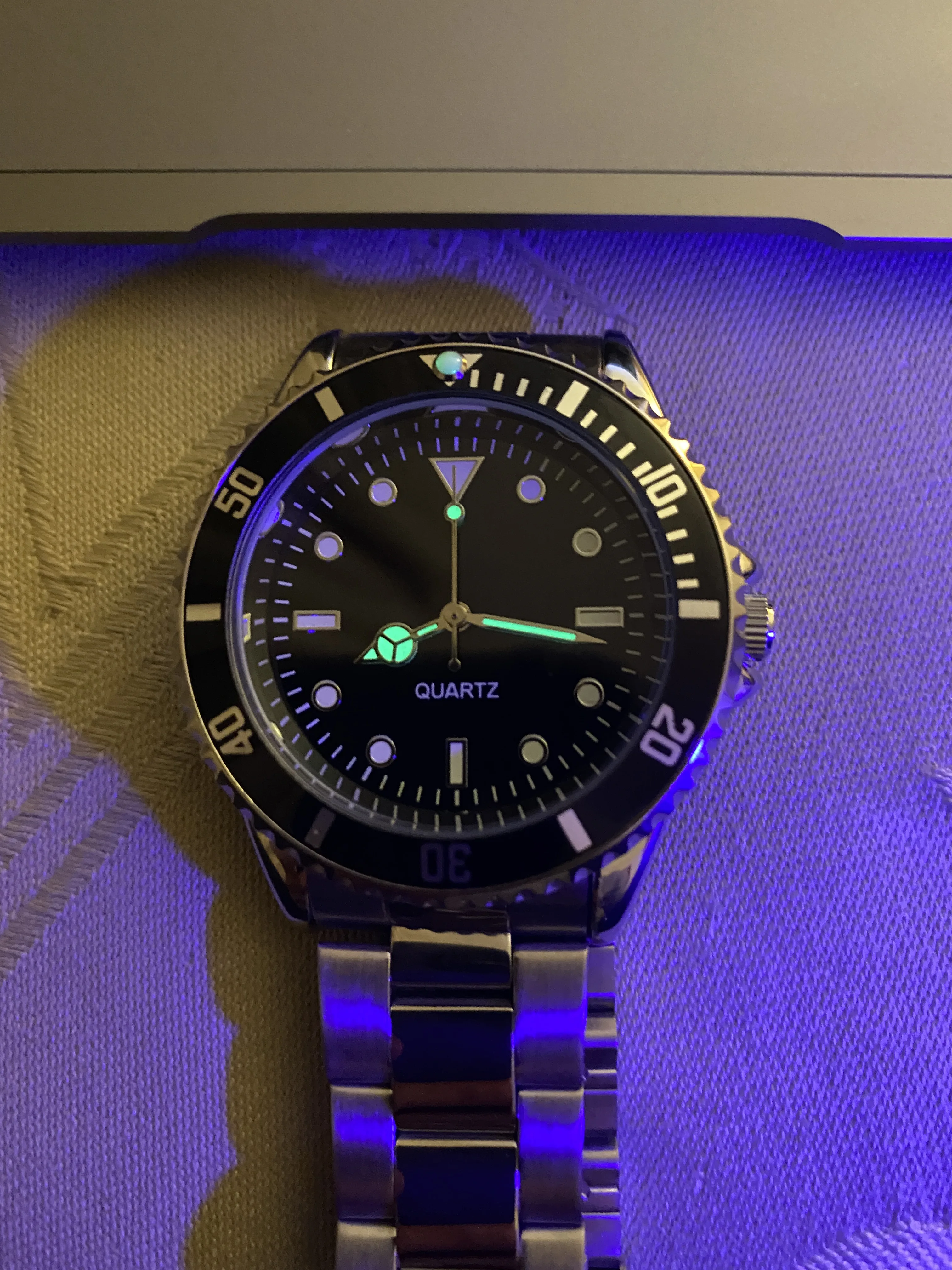 Браслет изготовлен из нержавеющей стали, а Безель-из никеля и светится