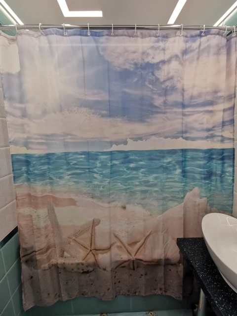 супер шторка, полностью совпадает с узором на моей плитке в ванной. давно искала. быстрая доставка