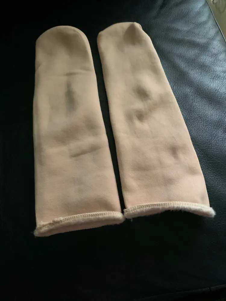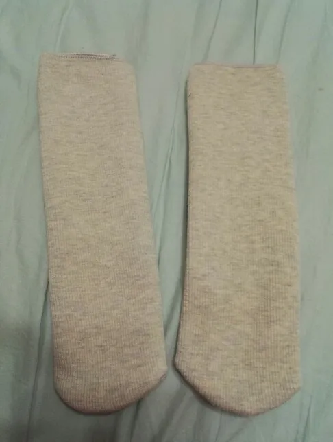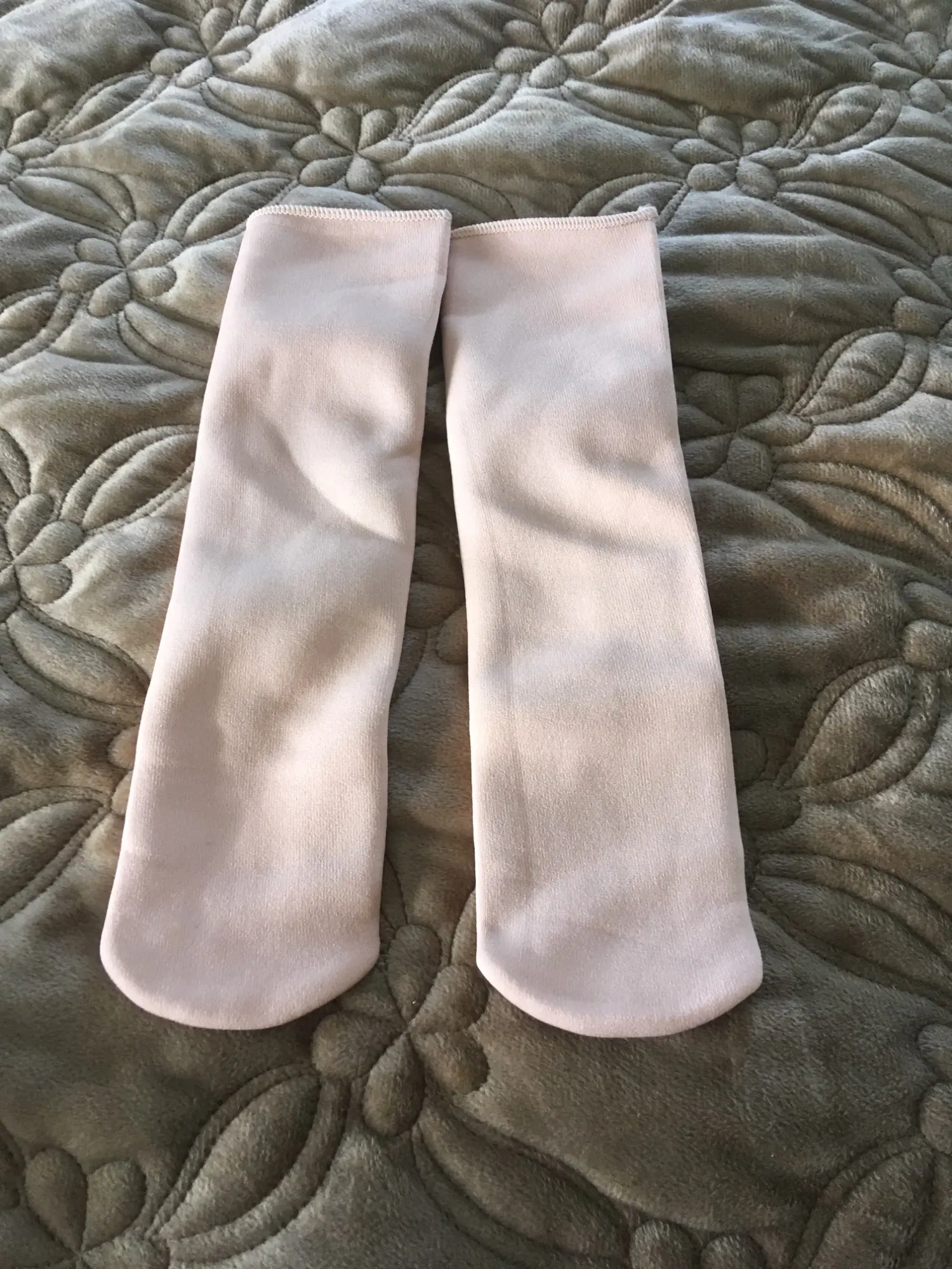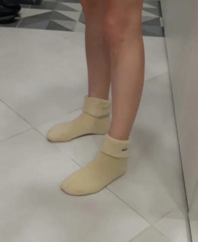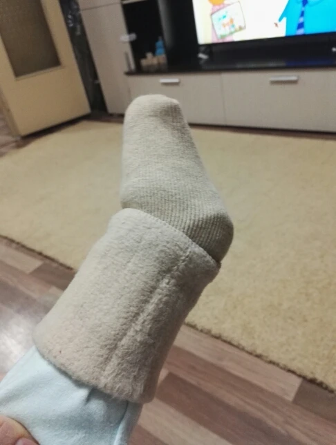 Шли долго в СПб, трек-номер не отслеживался, был указан неверный, как сообщалось. На вид носки как капроновые колготки с начёсом внутри, в обувь проскальзываешь; тёпленькие.
