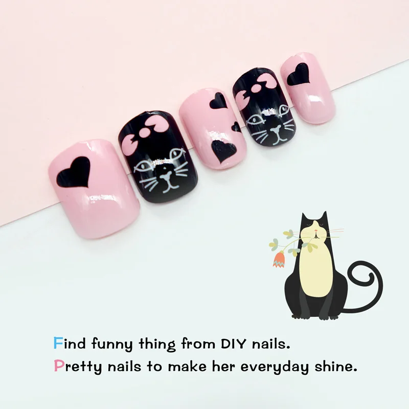 Накладные ногти на черных котах, Короткие квадратные накладные ногти 24 шт.компл. с предварительно приклеенными наконечниками для ногтей