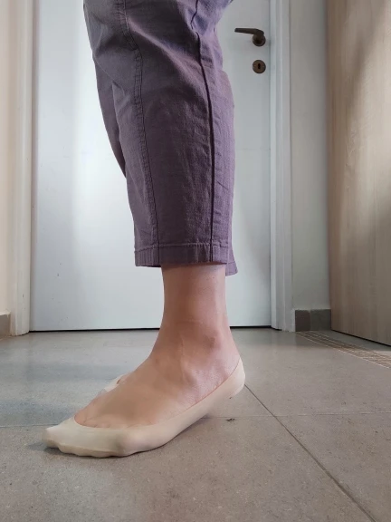 Доставка в Израиль 13 дней. Визуально отличные следки. Изнутри по кругу силикон и сзади тоже. Поэтому , несмотря на то что они не глубокие, с ноги не сползают. НО! Этот силиконовый цветок на подошве( второе фото) зачем нужен? Я прошла в них километр и ноге больно. Продавец, уберите его или сделайте опции с цветком и без. И я куплю много.
