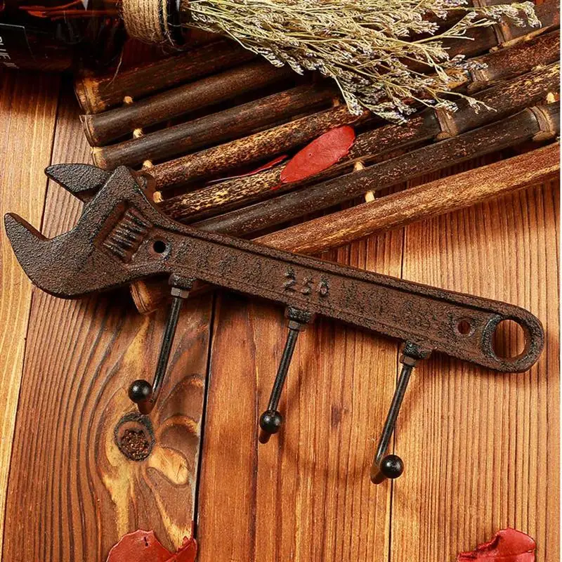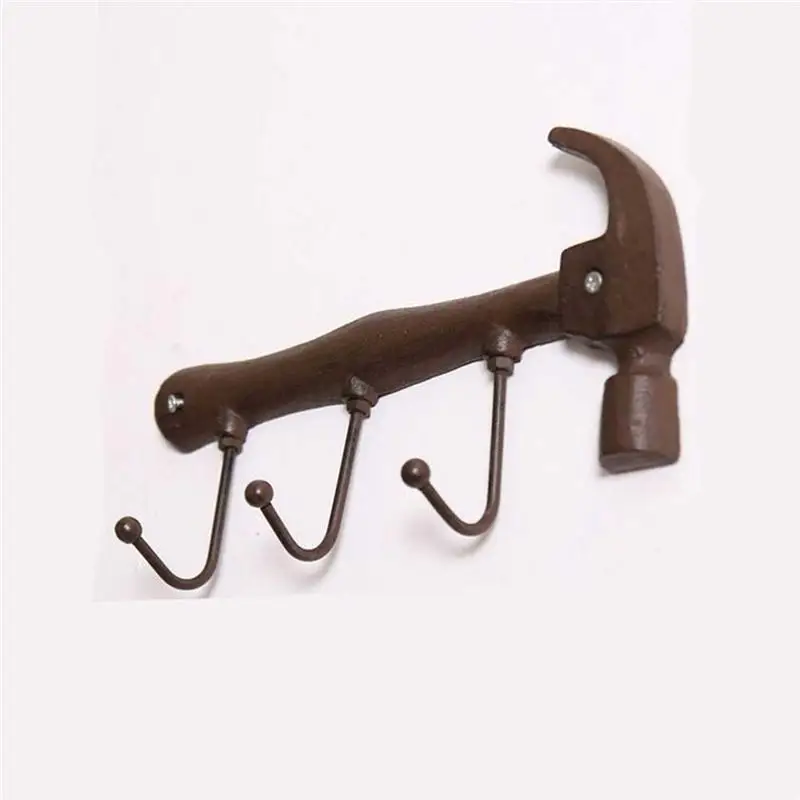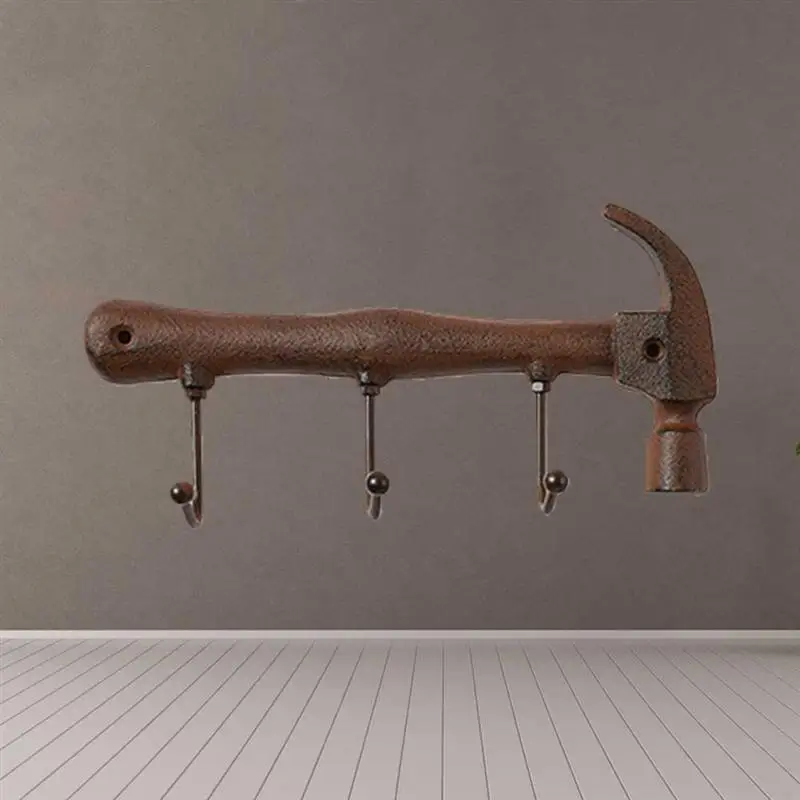 Настенный крючок OUNONA, Архаическая вешалка трубка для курения в форме молотка, стойка в американском промышленном стиле, 3 крючка, держатель для пальто, сумок для полотенец