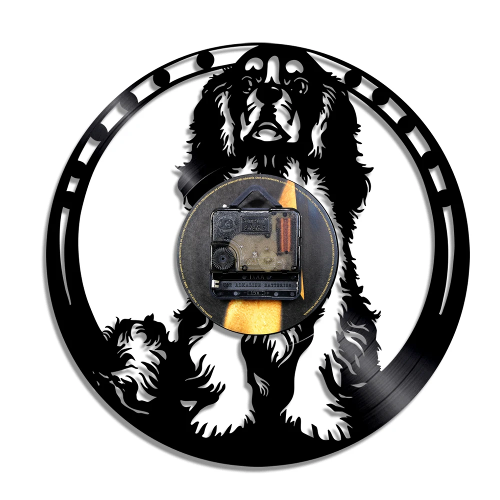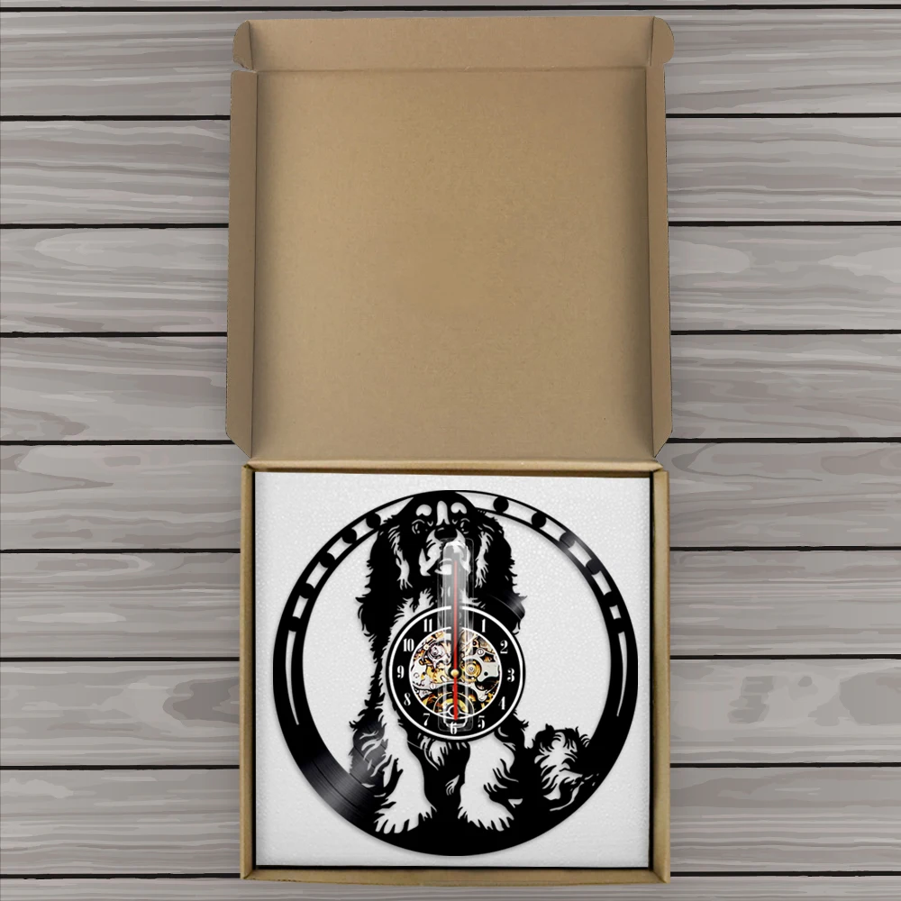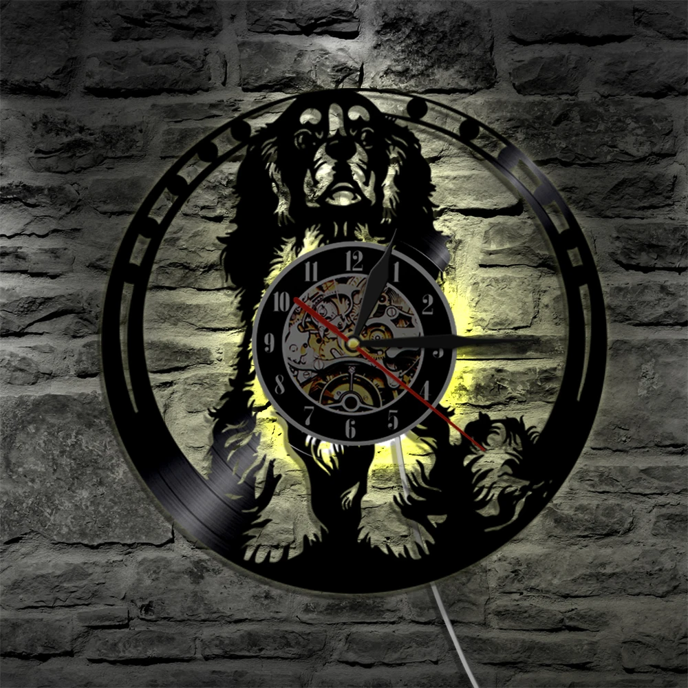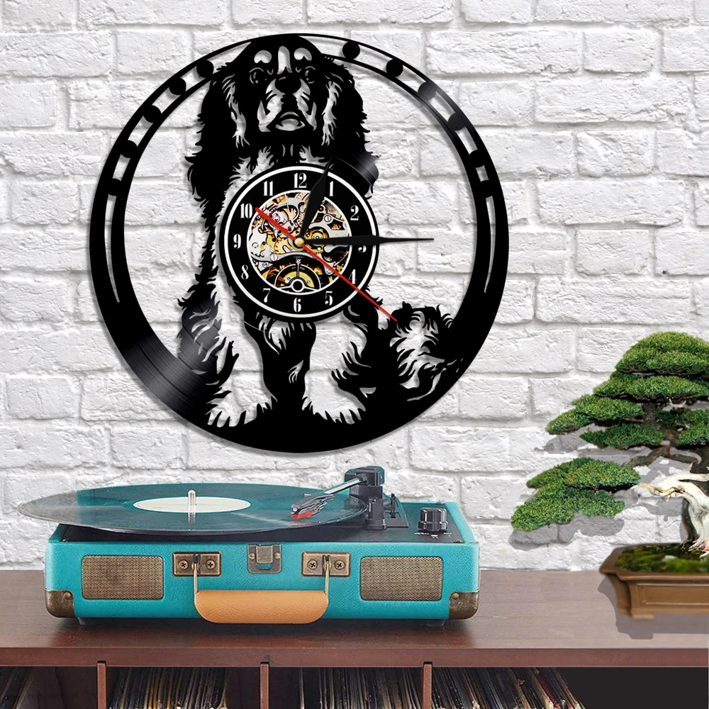 Кавалер Кинг чарльз спаниель художественная декоративная стена часы собака силуэт тень Черный Висячие виниловые записи настенные часы Настенный декор