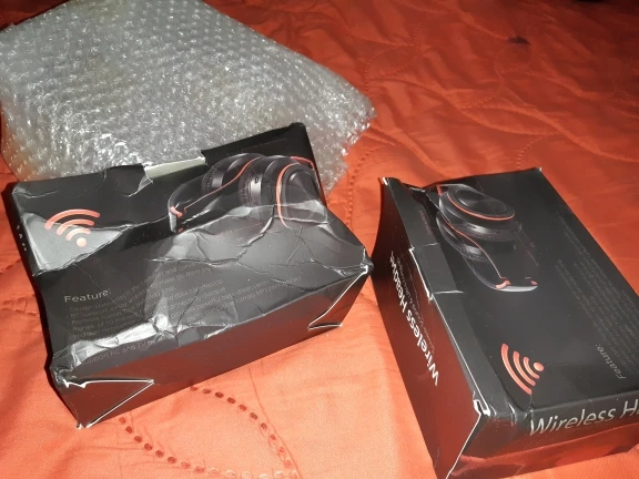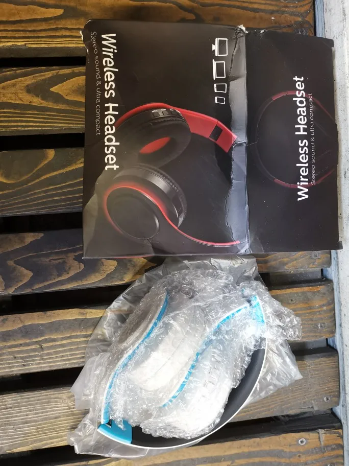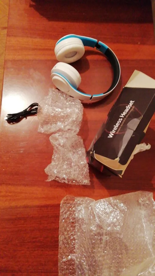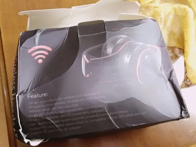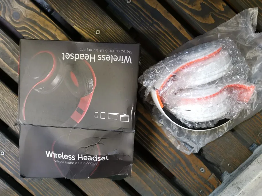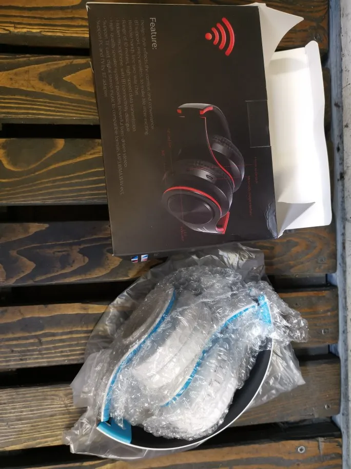Доставка до Москвы три с половиной месяца. Судя по состоянию коробки, нежного обращения посылка в дороге практически не знала. Даже удивительно, что сами наушники оказались целыми и рабочими, учитывая такой с виду дешевый пластик и их хлипкость. Звук средний: верхов и низов мало, но не прям уж откровенно плохой. Иногда срывается блютуз-подключение (возможно, дело в телефоне, но с другими девайсами у телефона коннект не пропадал). Потом проверю совместную работу наушников с другими устройствами.