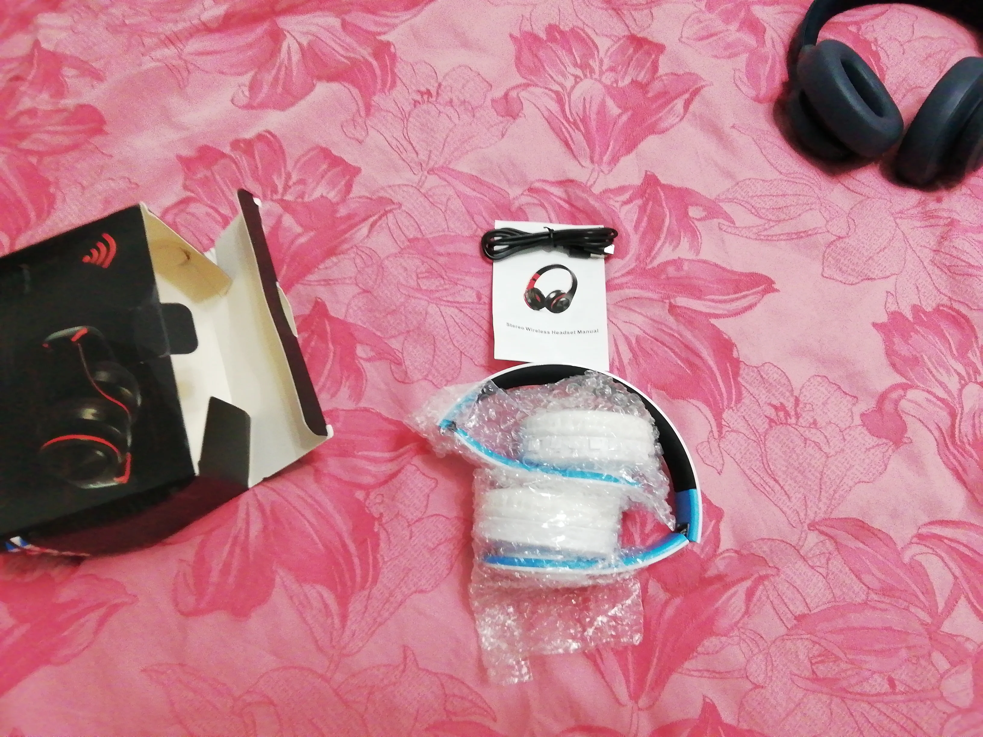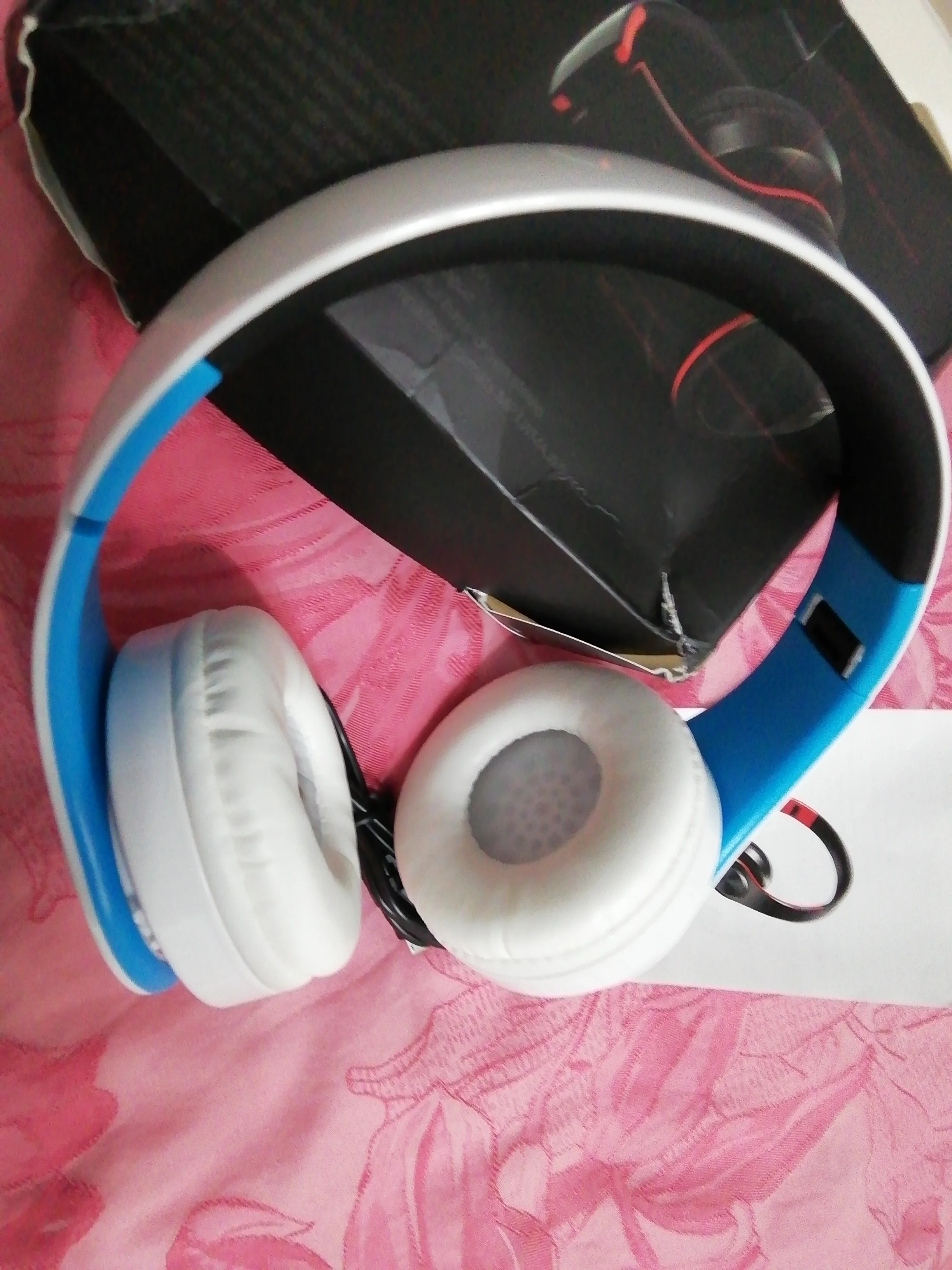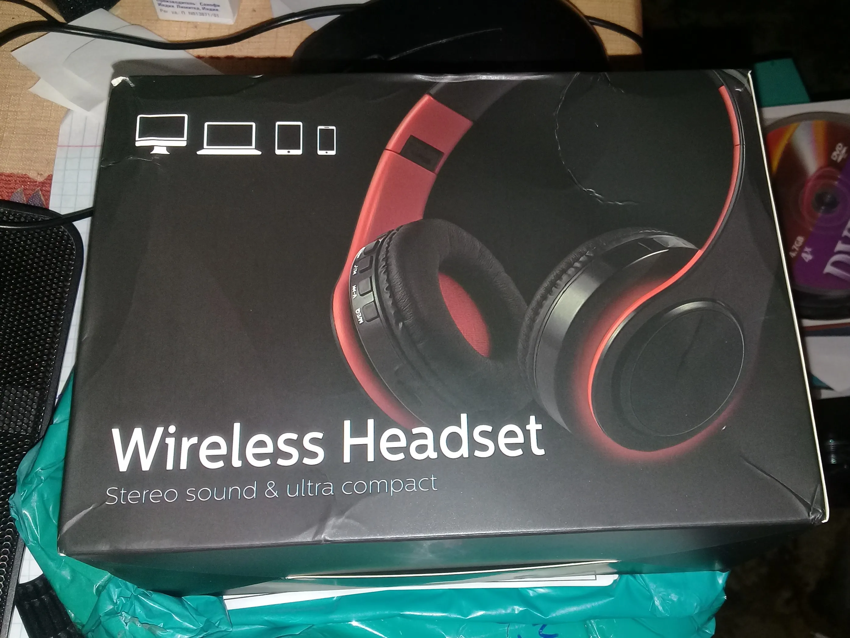 Доставка до Москвы три с половиной месяца. Судя по состоянию коробки, нежного обращения посылка в дороге практически не знала. Даже удивительно, что сами наушники оказались целыми и рабочими, учитывая такой с виду дешевый пластик и их хлипкость. Звук средний: верхов и низов мало, но не прям уж откровенно плохой. Иногда срывается блютуз-подключение (возможно, дело в телефоне, но с другими девайсами у телефона коннект не пропадал). Потом проверю совместную работу наушников с другими устройствами.