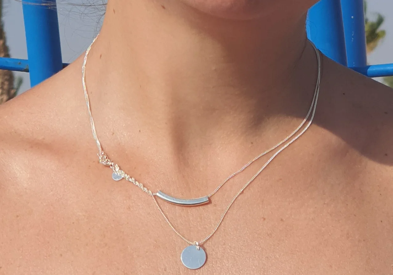 Цепочка Женская Геометрическая из серебра 925 пробы, с кулоном в виде круглого диска
