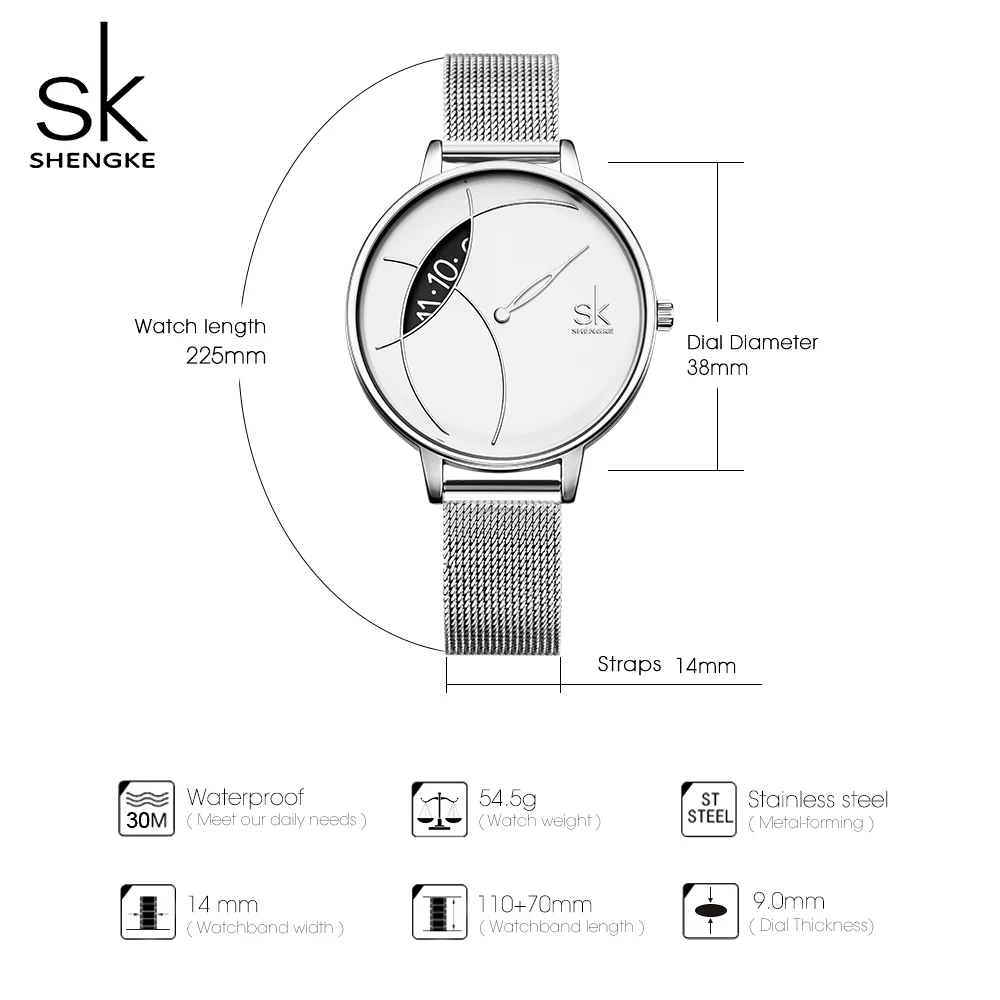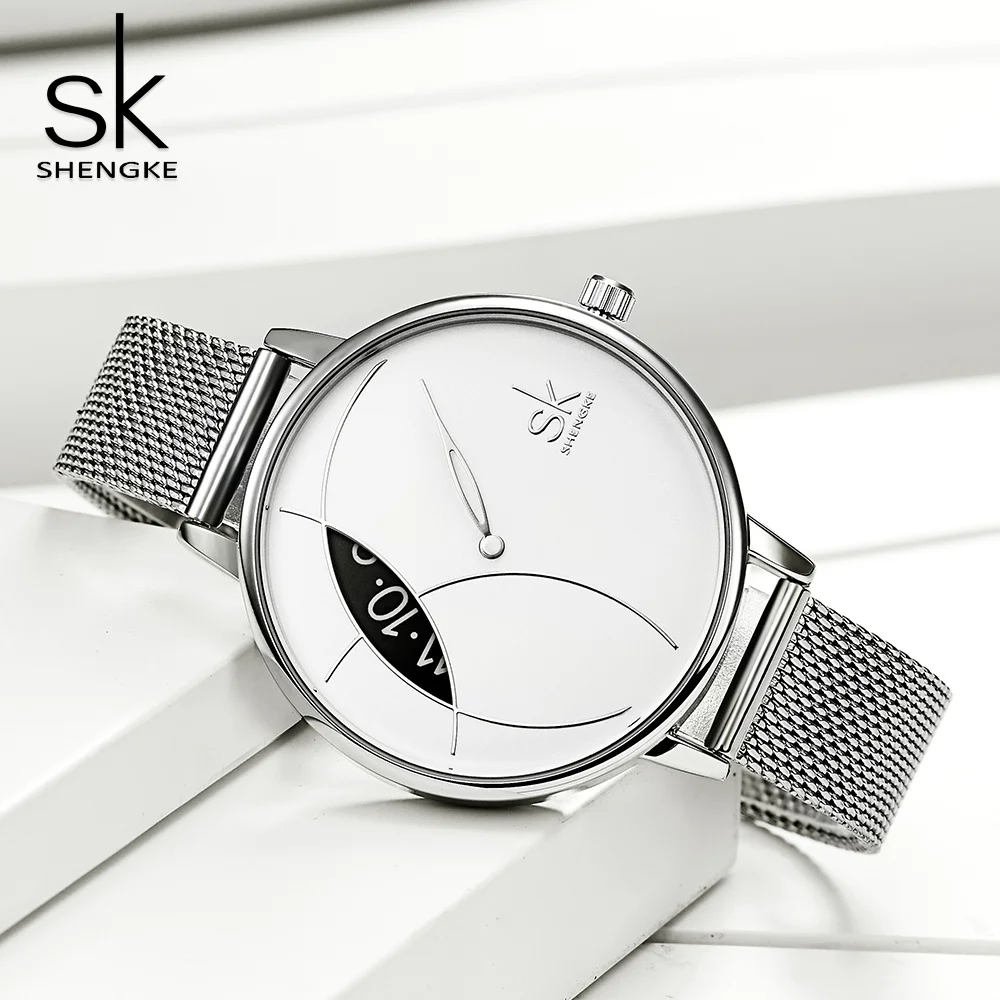 Shengke креативные часы для женщин, часы из нержавеющей стали, супе...
