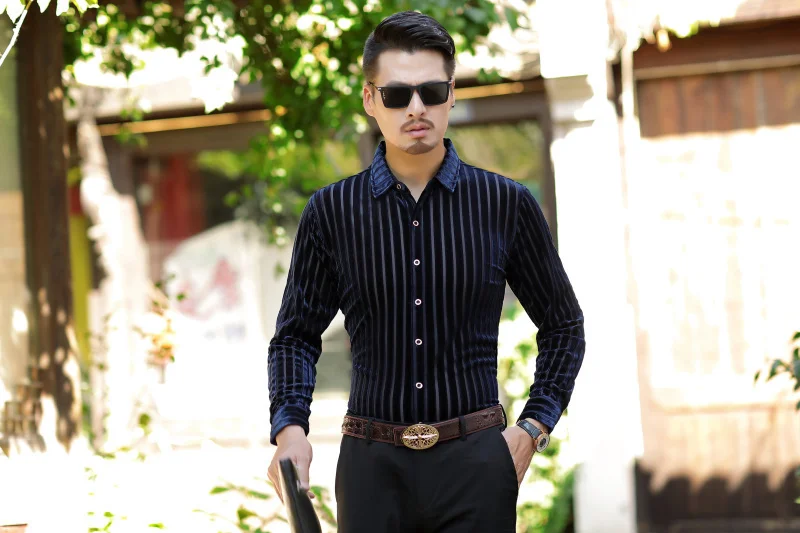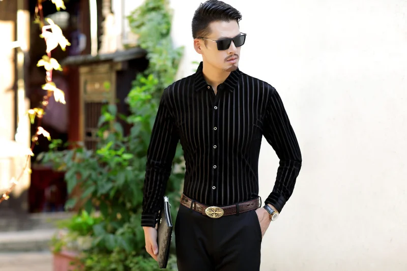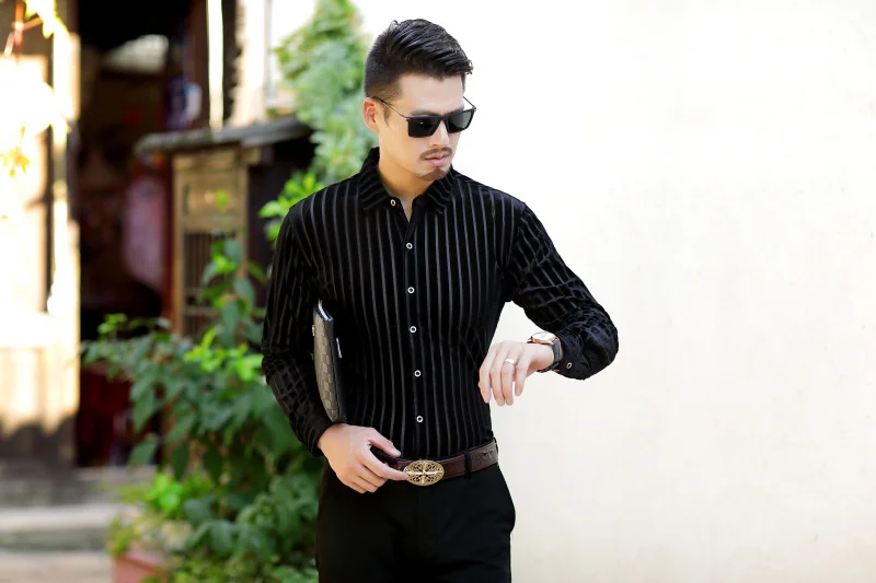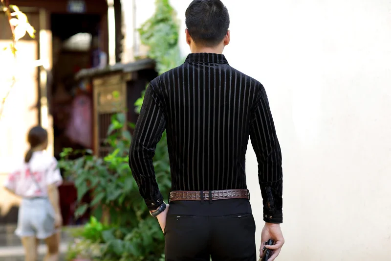 Рубашка мужская в полоску, деловая Повседневная офисная рубашка с длинным рукавом, 2018
