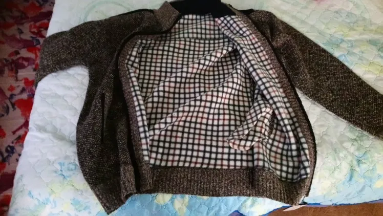 сшитая из отходов, лоскутов, на скорую руку с торчащими отовсюду нитками, зашитыми наглухо карманами, без единой бирки, хотя одна есть- почему то снаружи и на плече, размер подошел но воротник такой что туда две шеи мои влезут, зачем так шить это ж позорище, тоненький, легкий как футболка с длинным рукавом, стрёмный как наизнанку вывернутый. только если дома ходить, жаль.